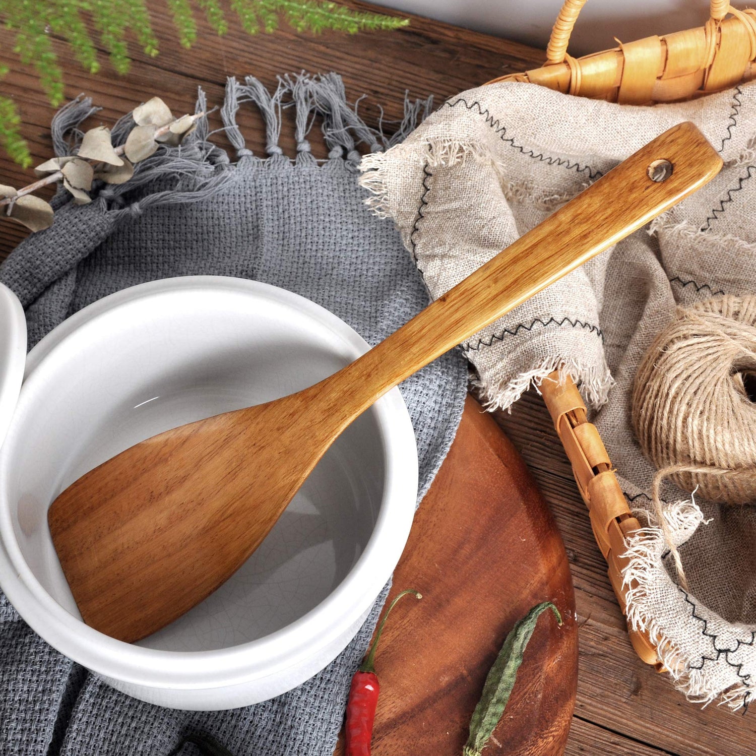 - ✔ Large Comfortable Handle: Wood Spatula /Slotted Turner/Ladle/Frying spatula for stirring, mixing, dividing, tasting, turning, and serving of food,will not scratch surfaces,safe for use on nonstick cookware.