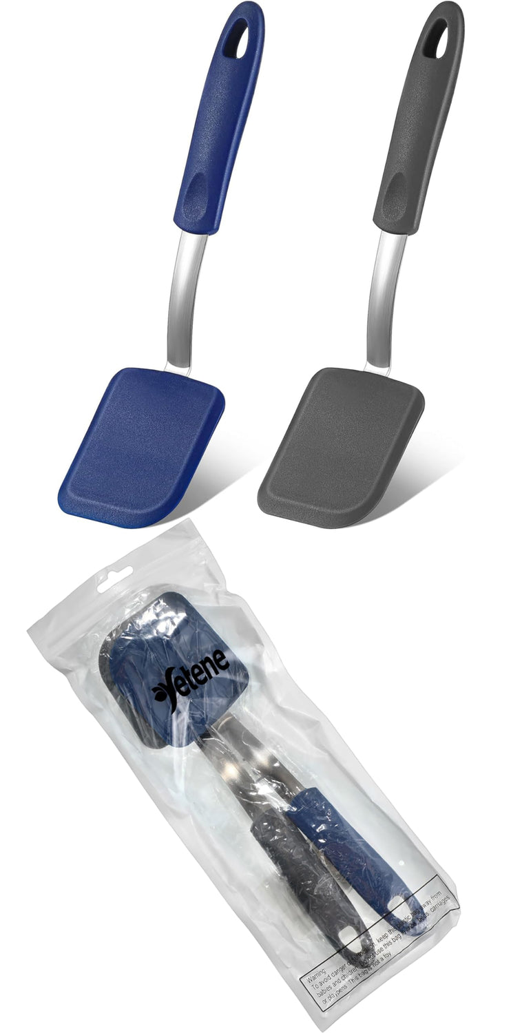 Yetene Silicone Cookie Spatula Turner 2 Pack Mini Brownie Spatula Flexible Kitchen Small Silicone Spatulas for Nonstick Cookware Heat Resistant No Scratch Flipper for Egg Pancake (Gray, Blue)