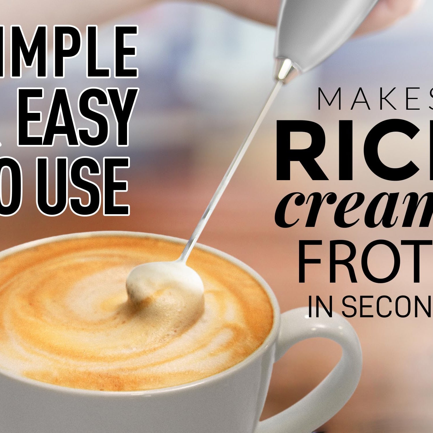 • CREAMY VELVETY FROTH IN SECONDS: Making coffee-shop-style recipes at home is as simple as it can be with this milk frother. The 13,000 RPM motor and 25 spiral rings on the whisk let you whip up rich foam in no time. Level up your everyday warm or cold coffee, latte, cappuccino, hot chocolate, matcha, or powdered drinks with this coffee foam.
