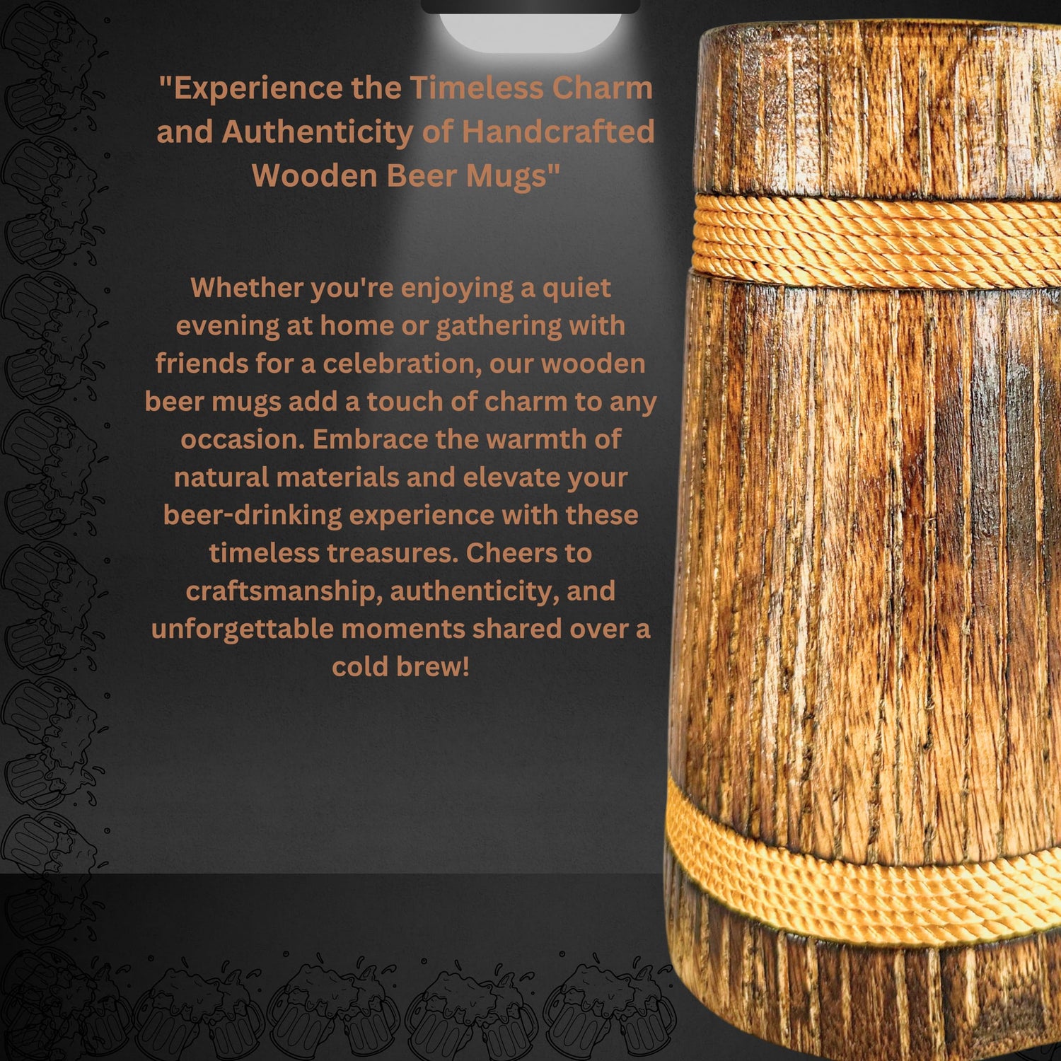 ANTIQUANA Handmade Wooden Beer Mug | Camping Travel Outdoor Mugs for Men | Tea Coffee Cup with Handle | Craft Tankard Drinking Stein