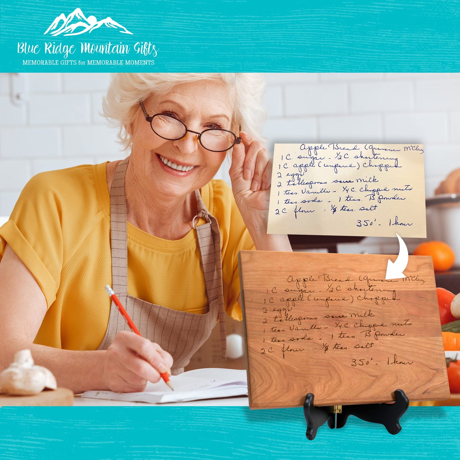- ABOUT US: Blue Ridge Mountain Gifts is a growing company specializing in personalized gifts and home decor products. We offer high-quality products like this recipe cutting board. Our custom cutting boards are made in the USA and are manufactured and engraved locally in Virginia.