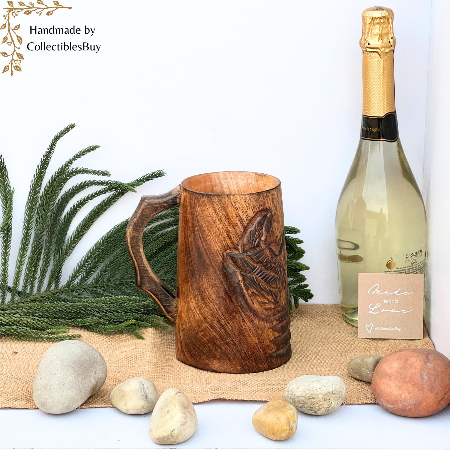collectiblesBuy Authentic Retro Rustic Brown Hand Carved Eagle Design Embossed Large Wooden Beer Tankard Mug Food Safe for Home and Restaurants Parties Housewarming Toast Celebrational