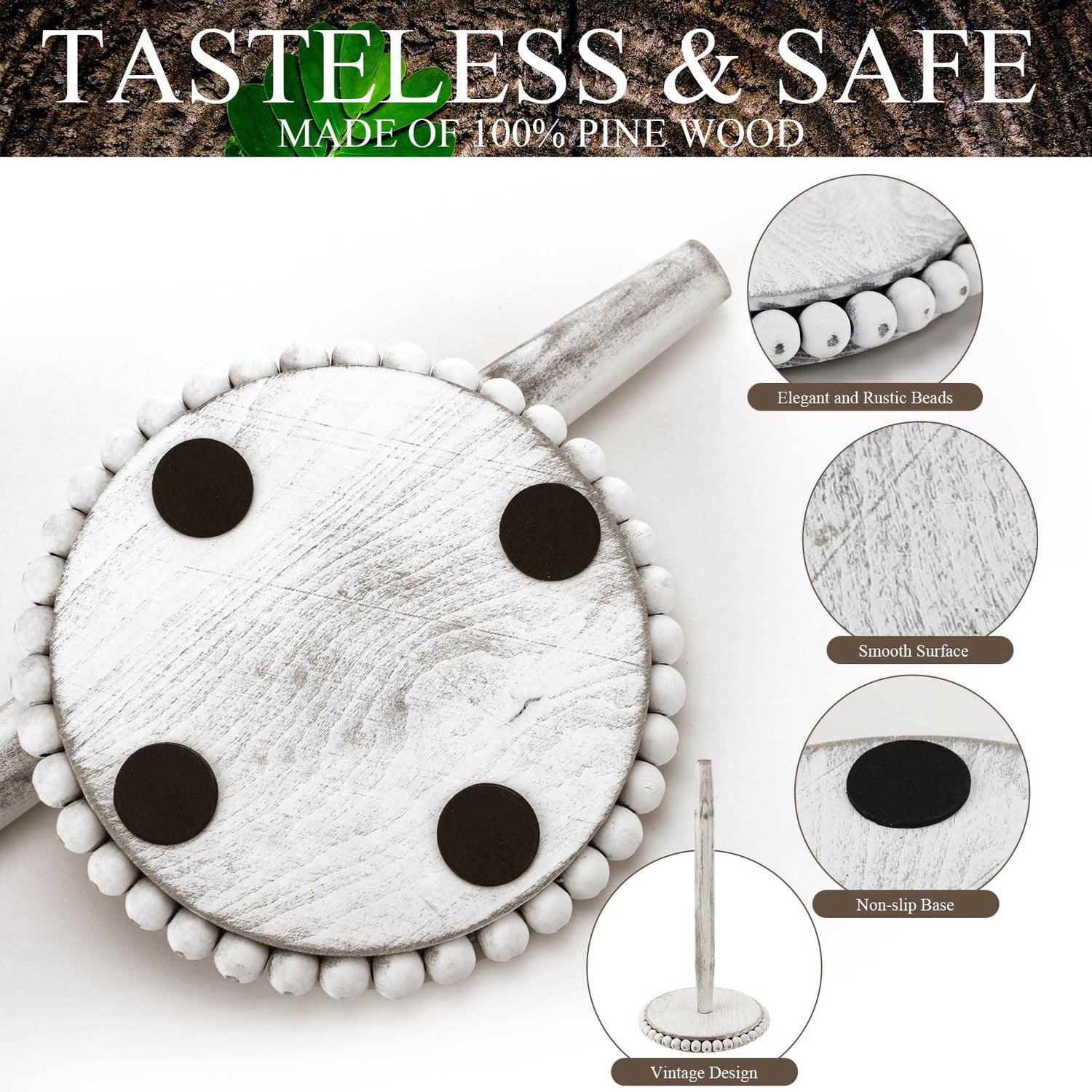 Farmhouse Paper Towel Holder Washed Beaded Paper Towel Stand Wood Paper Hanger Rack Standing Towel Roll Stand Organizer Paper Roll Holder Roll Dispenser for Kitchen Bathroom Countertop Cabinet, White