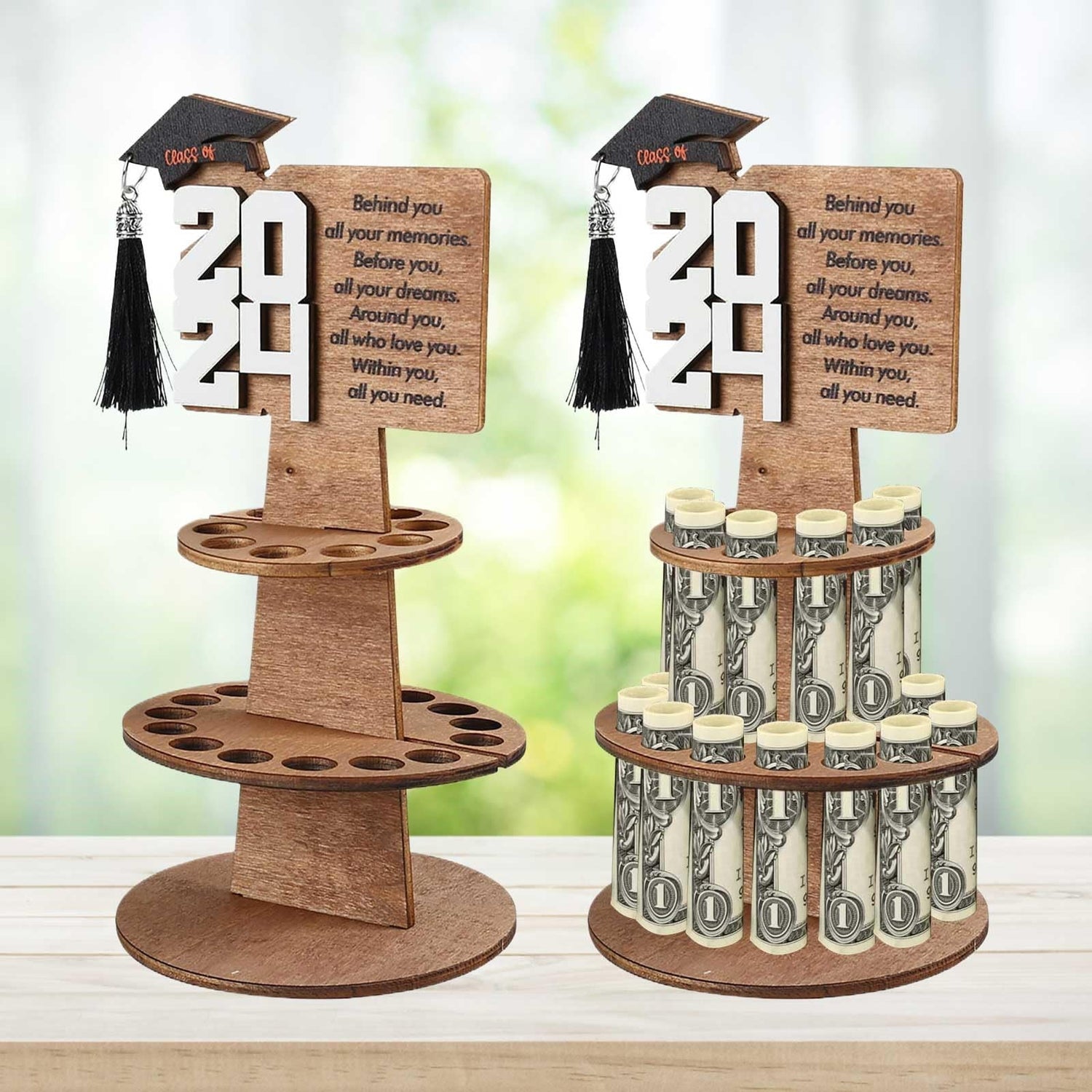 The Graduation Money Gift Holder is the perfect gift for the Class of 2024. It is a creative, thoughtful, and practical way to congratulate the new grad and show them how much you care. Give the gift of money in a unique and special way with this money cake that will be sure to make a lasting impression. Order yours today and make the 2024 graduation celebration one to remember!