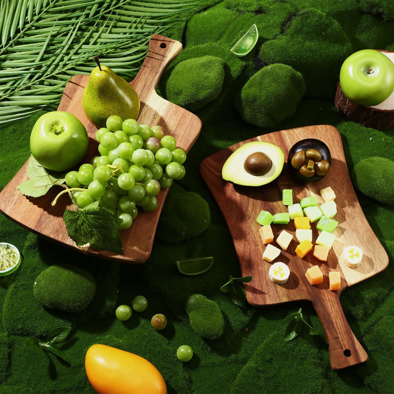 • Double Sided Usage and Multipurpose Function: unleash your culinary skills without limitations; These wooden cutting boards for kitchen are double sided, effectively giving you enough surface to work with; They are not just limited to slicing and chopping; You can also use them as serving trays for cheese, fruits, or charcuterie, making them a multipurpose addition to your kitchen