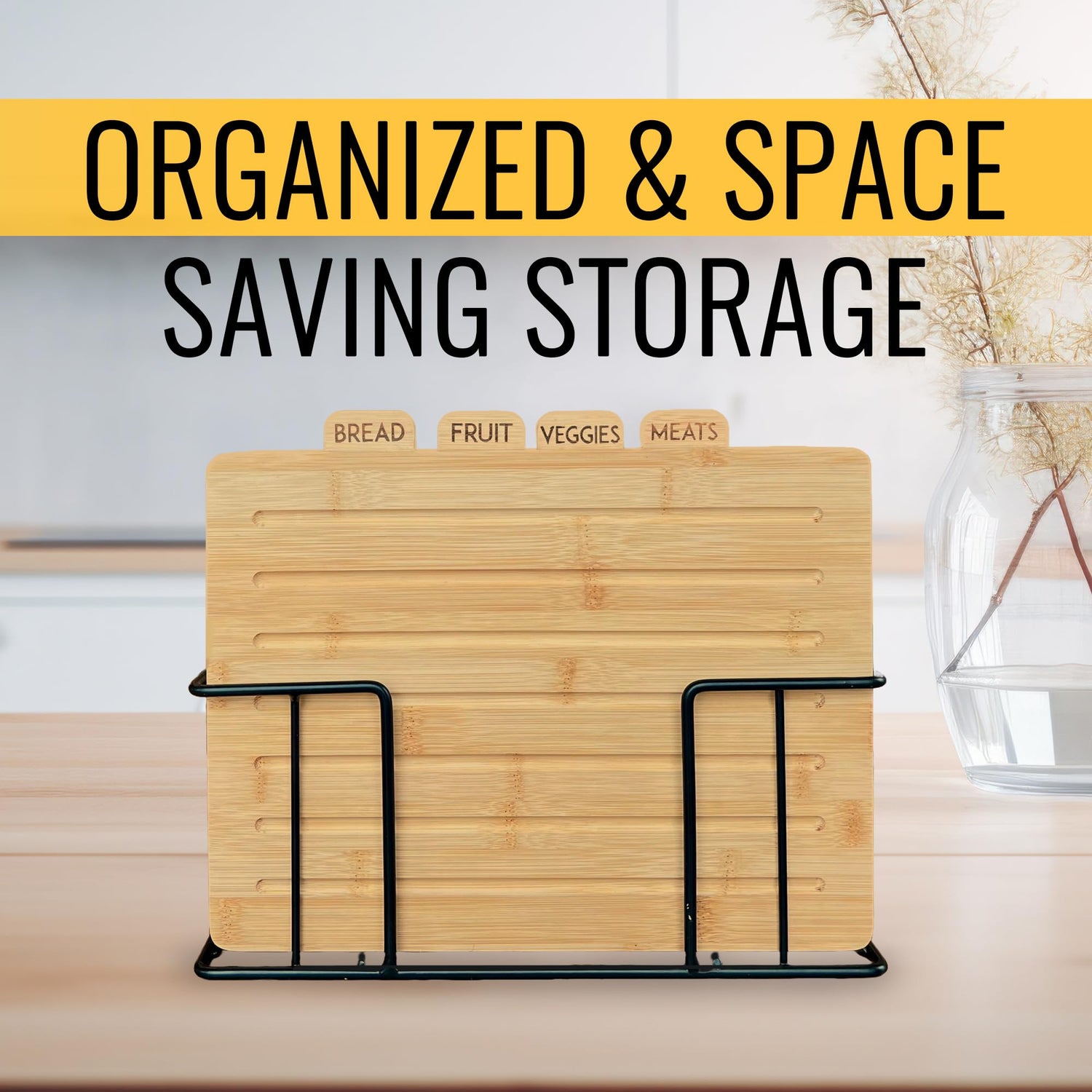 • ORGANIZED STORAGE - Worried about cupboard clutter? With a stand built to store and organize these thin cutting boards on the counter, you'll never have to worry about searching through disorganized drawers and containers to find them.