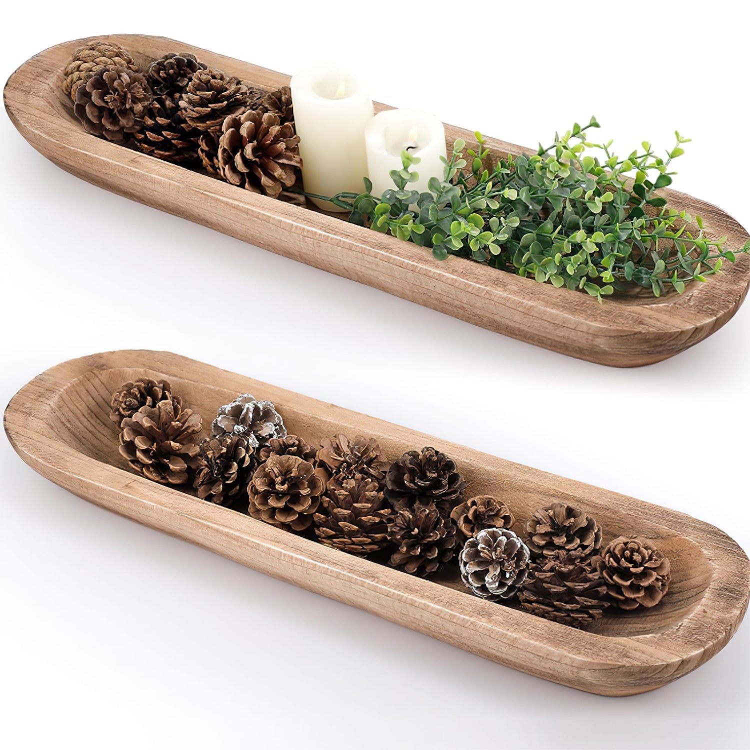 • VERSATILE USE: MOLADRI decorative wood dough bowls fit into almost any style of home. Wooden decorative bowl to hold keys, watches, flameless candles, mini succulents, natural colored gemstones or seasonal decorations for Easter, Thanksgiving, Christmas, Fall decorations. You can use the centerpiece tray year-round, perfect for tabletop display settings.