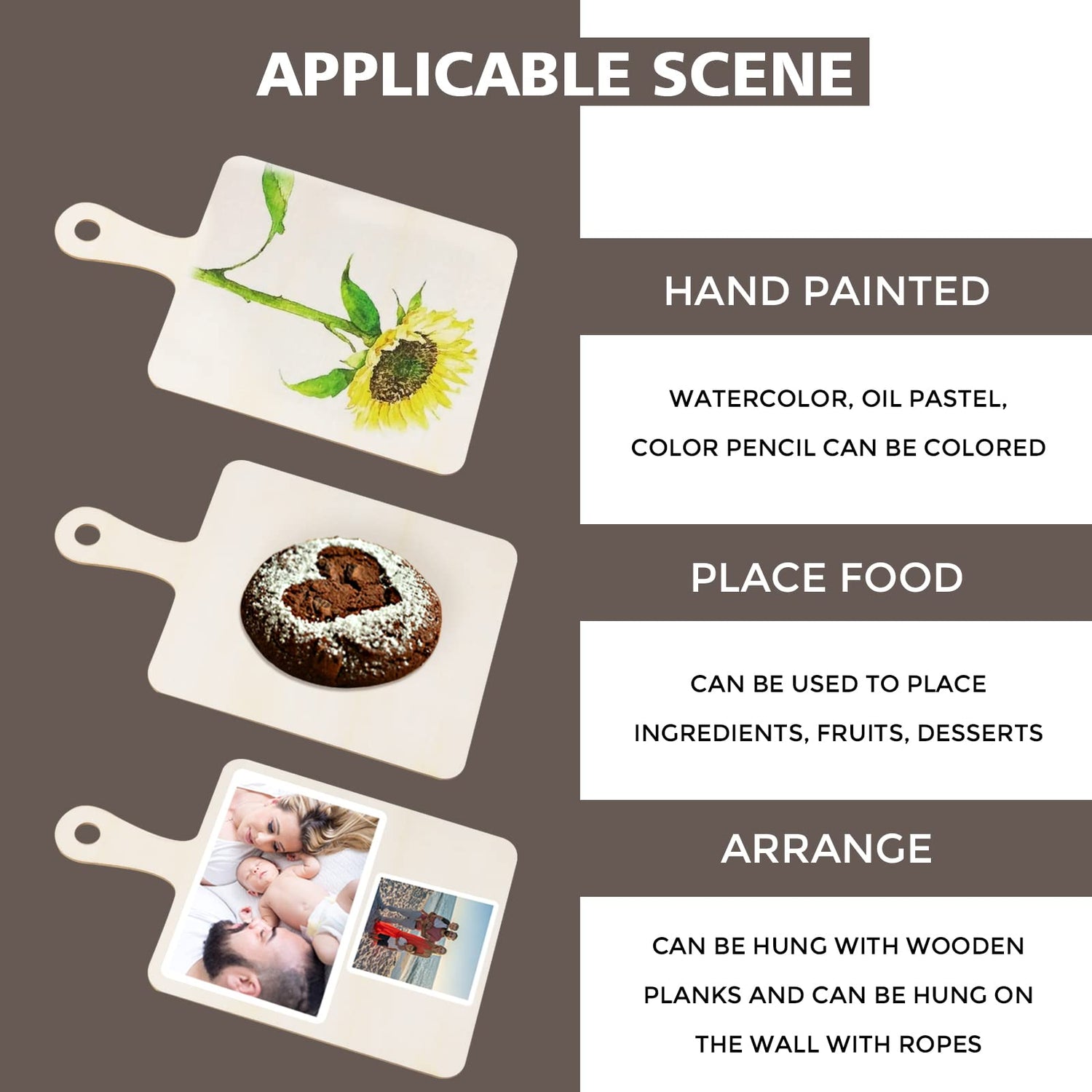- Exquisite design: These mini craft cutting boards are designed with a cute paddle shape and a handle that easy to hold.Each cutting board has a round hole at the top,which makes it easy for you to make them become excellent decorations and hang them on walls,doors and hallways with a nail or rope