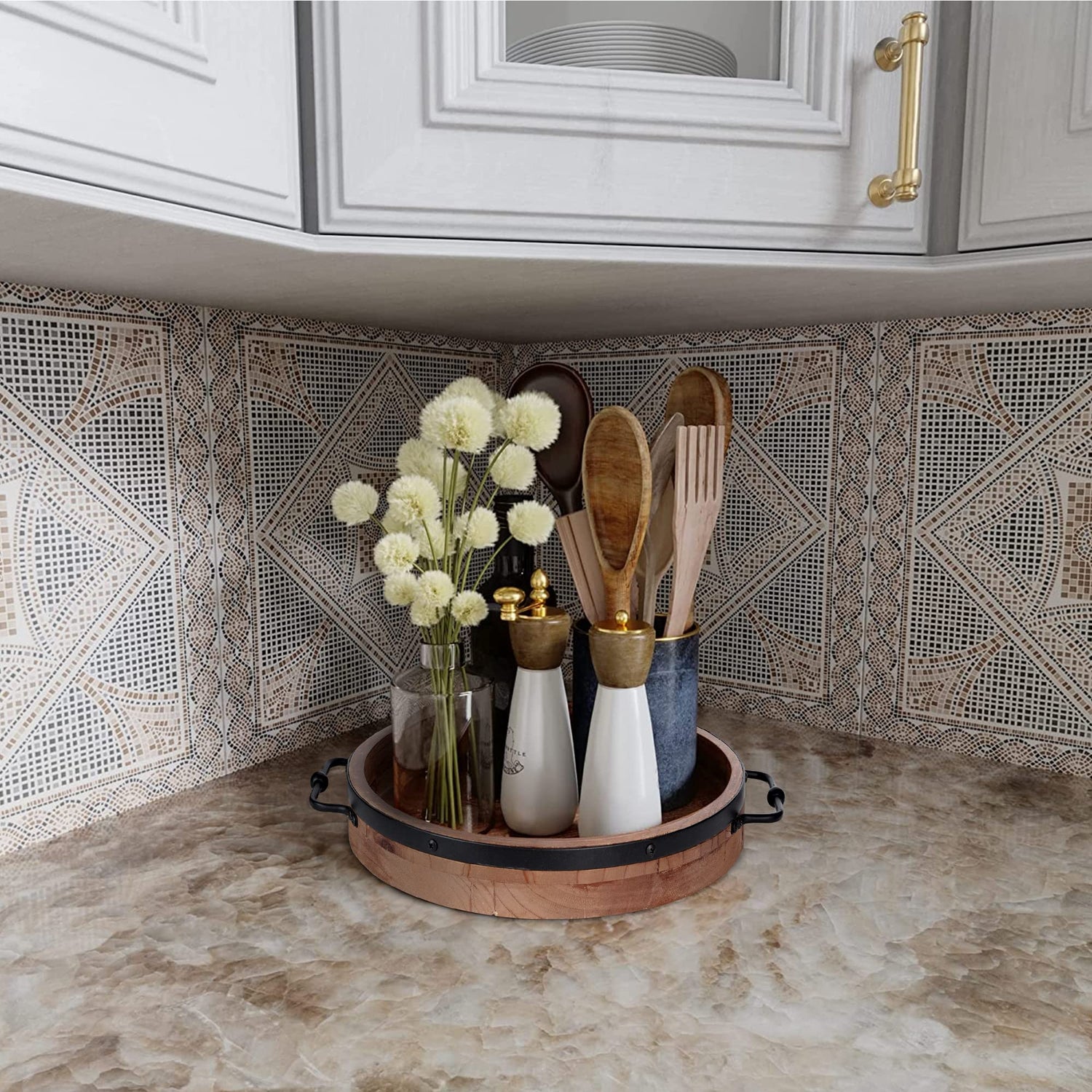 • ✅ ORGANIZE YOUR HOME IN STYLE - This round wood tray is a classic item for layering and grouping your home accessories, it can be used as a tray for table centerpiece, kitchen tray for counter, bathroom tray or even cocktail tray to make your decorative items look more stylish.