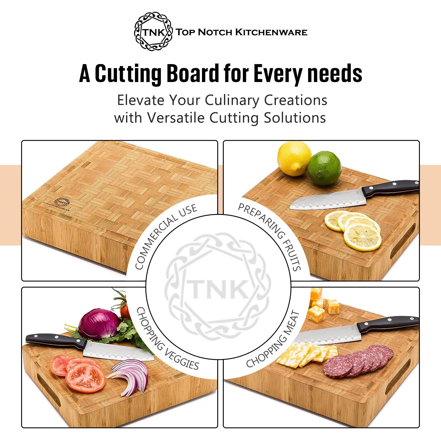 - TOP-NOTCH QUALITY BUTCHER BLOCK :- Experience the pinnacle of culinary excellence with our Top-Notch Quality bamboo cutting board. Our small cutting board is Crafted with precision and a commitment to perfection, this chopping board stands as a true testament to superior craftsmanship. This butcher block ensures long-lasting durability, withstanding the test of time and heavy daily use. The smooth surface and elegant finish of this small wood board make it a stunning addition to any kitchen.