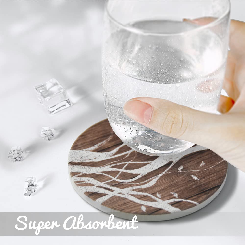 Details: UMIRRO Ceramic Coasters for Wooden Table, Absorbent Drink Coasters with Holder for Tabletop Protection, Rustic Country Farmhouse Coasters w/ Brown Wood Texture for Cups & Glasses, Coffee Bar Accessory
