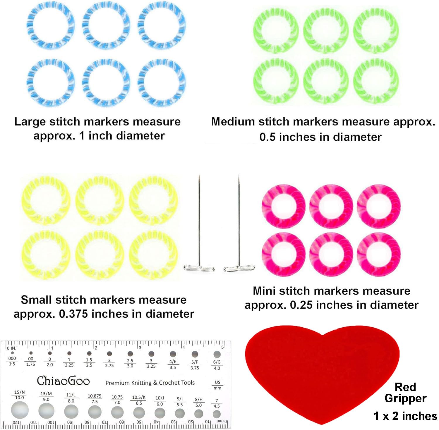 - Set also includes 2 cord keys, needle gauge and 24 stitch markers (6 units of 4 styles) and a convenient cloth carry case