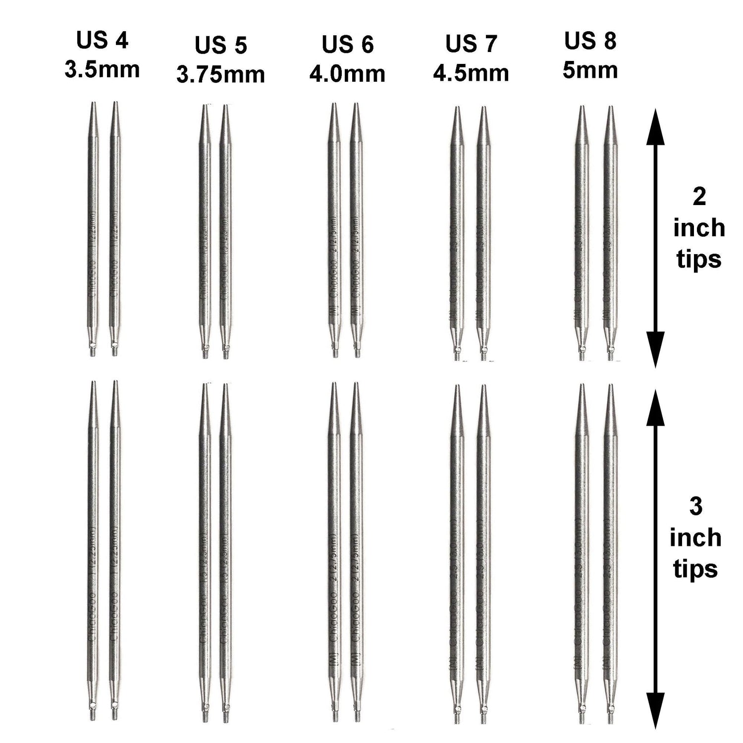 - Includes 1 ChiaoGoo Knitting Needles Interchangeable Twist Shorties Blue Lace 2 and 3-Inch Needle in US Sizes US 4, 5, 6, 7, 8 (metric 3.5, 3.75, 4.0, 4.5, 5.0) and 1 Craft Project Bag