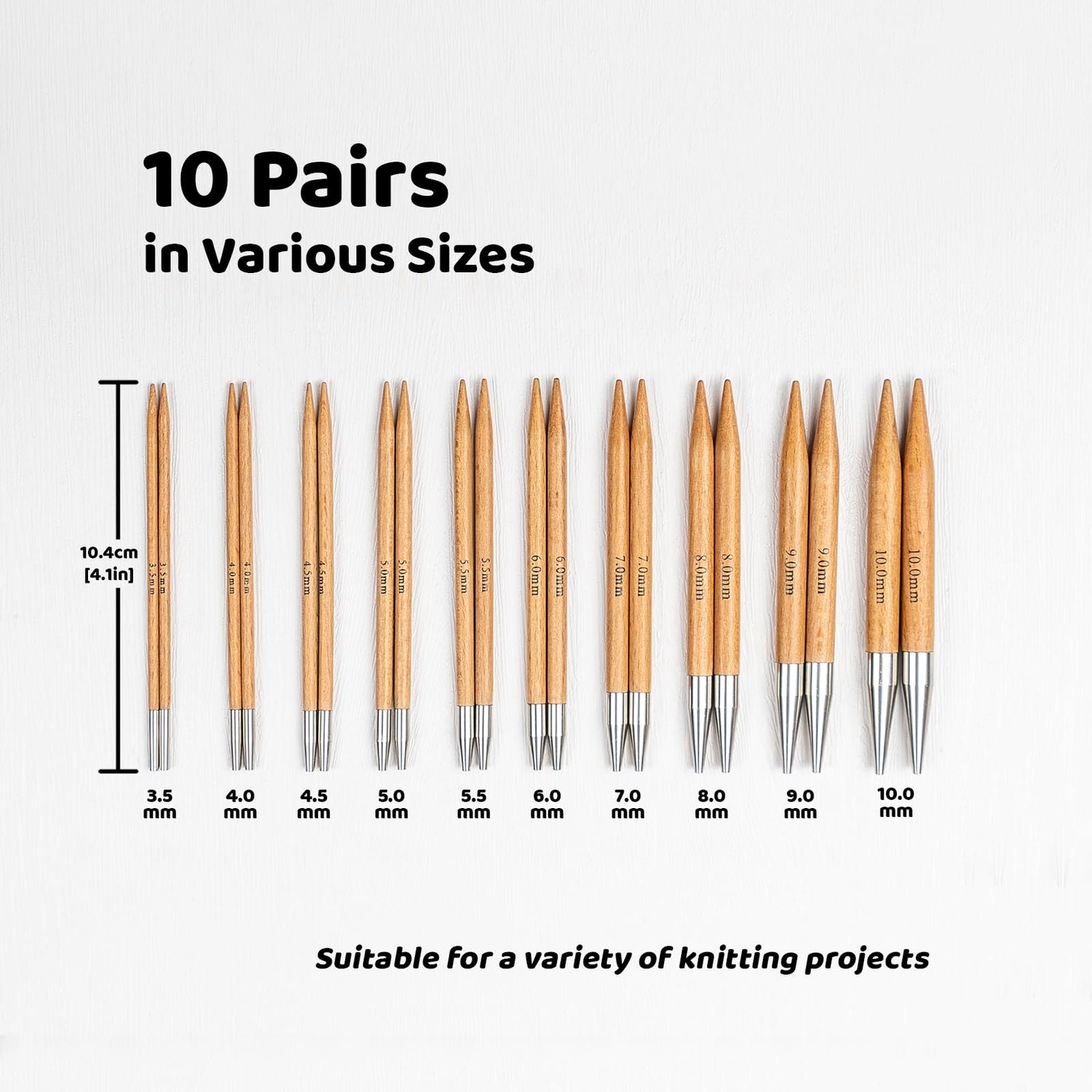 - Master all yarn crafts with 10 needle sizes (3.5mm-10.0mm), from delicate lace shawls to chunky winter blankets. European beechwood handles paired with stainless steel tips ensure perfect tension control for silk, wool, and bulky yarns.