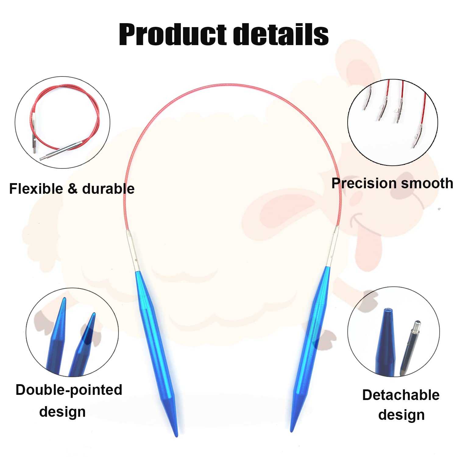 - High--Quality: The interchangeable circular knitting needles set is mainly made of hight-quality aluminum,adopted with hollow design,more lightweight.This needles smooth,durable and comfortable to use.It is more ergonomic and can knit for a long time without fatigue.Helping you with anything knitting projects