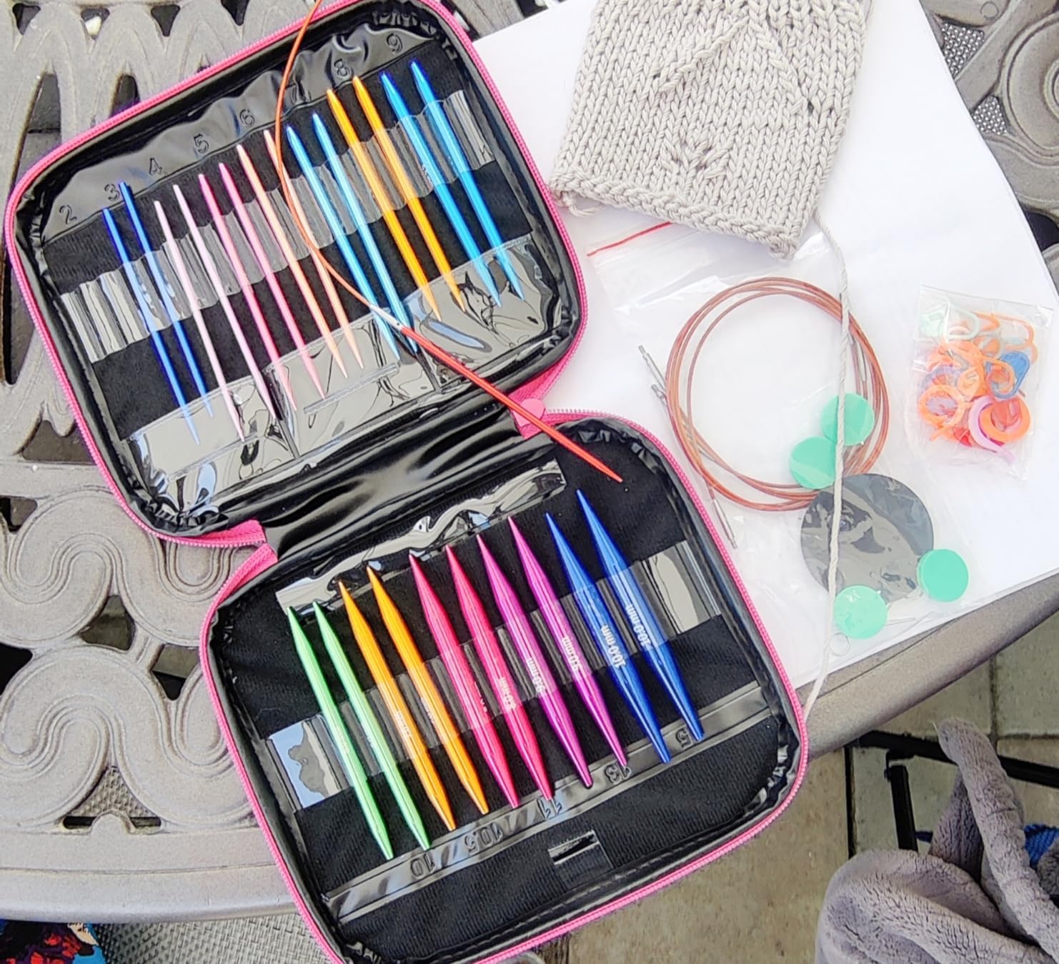 - Package Includes: 13 pairs of 4 inch aluminum circular needles and 4 cables of different lengths (11.8"/15"/17"/21.6") 4 pieces end caps,2 cable connectors,2 metal tightening keys and 1 posting tool,20 stitch markers,1 measure,1 leather bag.Enough knitting accessories for knit,includes everything you need to knit!
