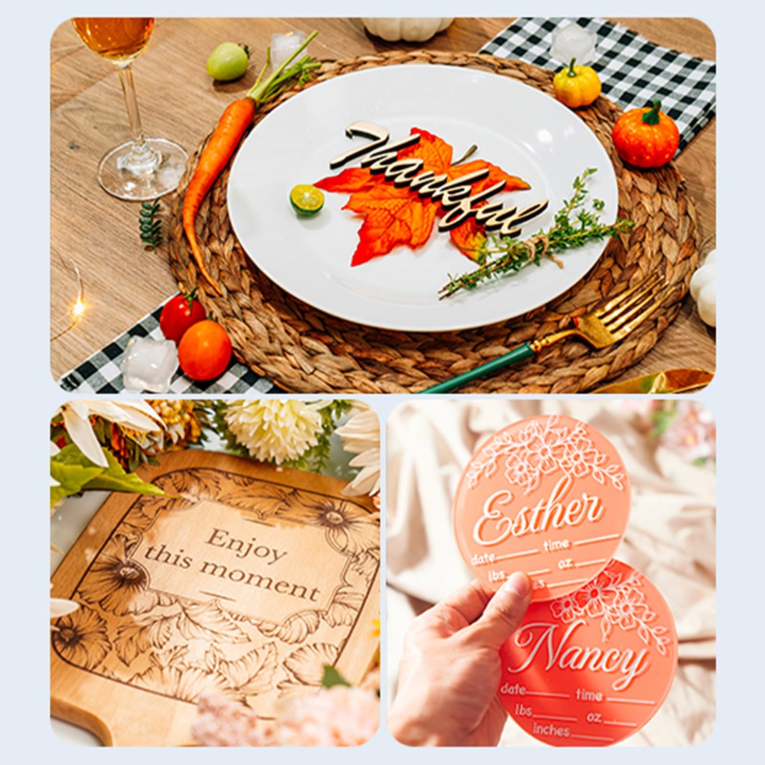 - 【Efficent Engraving & Cutting】T1 Laser Engraver features a true The 80W laser module Fixed-Focus,Built in FAC,Double Ultra-Fine compression technology a faster engraving speed up to 400mm/s, This versatile laser cutter and engraver machine can be used for creating a million of DIY projects based on hundreds of materials such as plywood, hardwood, metal, leather, glass, paper, dark acrylic, fabric, etc.