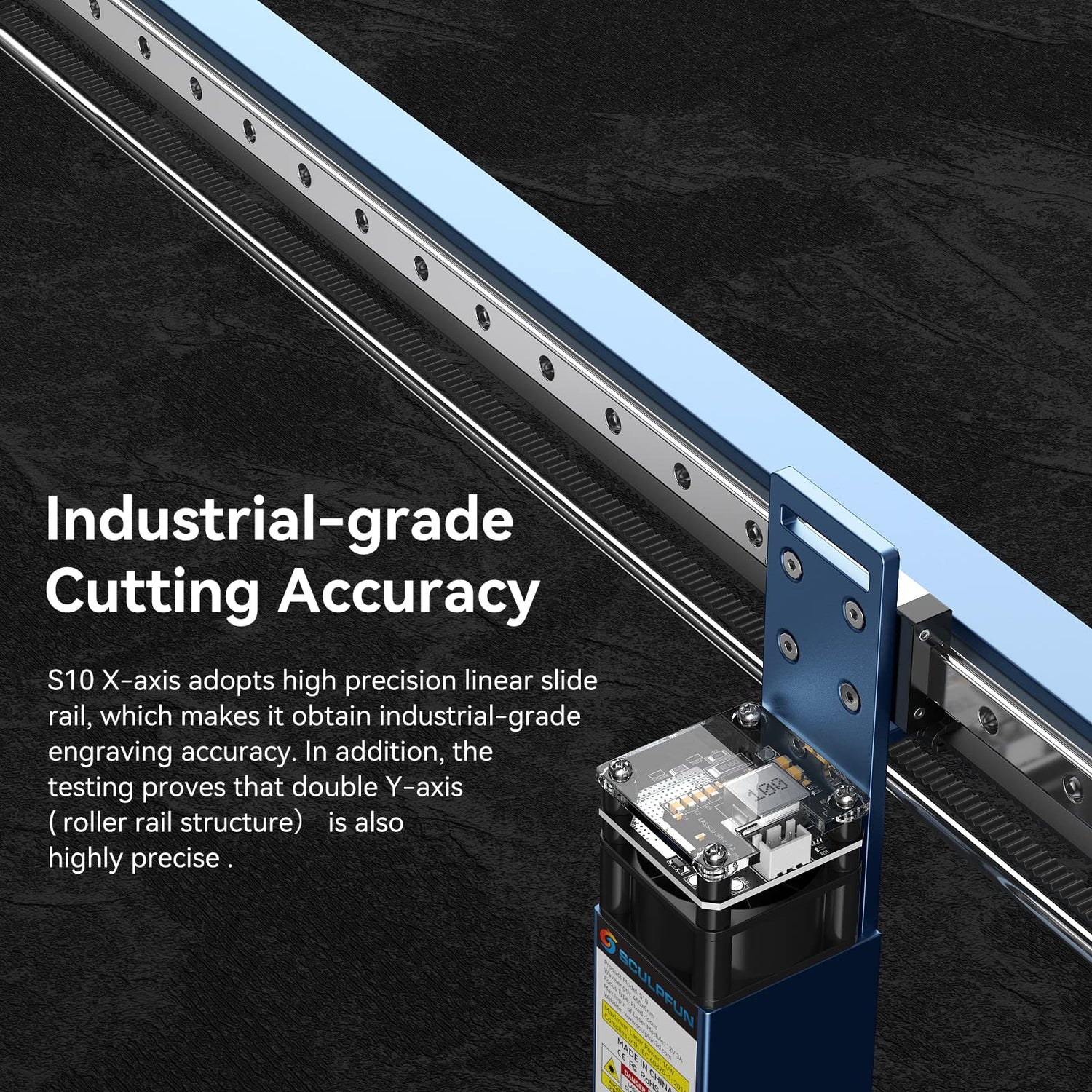 - 【Industrial-grade Engraving Accuracy】S10 laser engraving machine adopts industrial high-precision anti-shake linear X-axis slide rail, which avoids the wave line marks that other laser engravers appear when engraving or cutting and improves its engraving accuracy. It also adopts more advanced 32-bit chips motherboard to increase the speed of computating and processing and make engraving more accurate.
