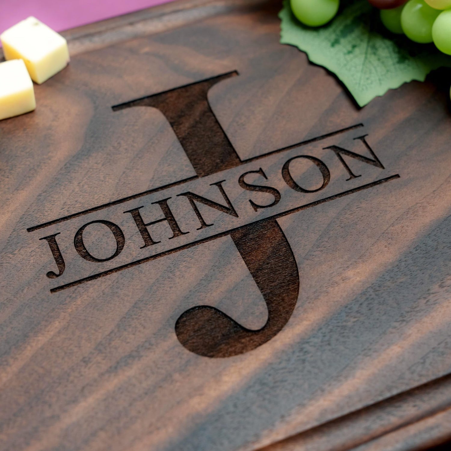 Straga Personalized Cutting Boards | Handmade Wood Engraved Charcuterie | Custom Wedding, Anniversary or Family Reunion Gift for Chef or Kitchen (Initial Design No.201)