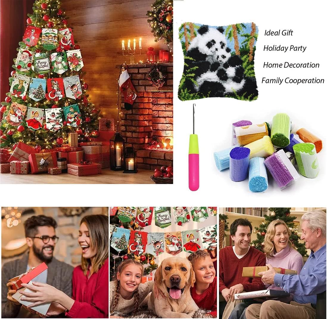 GemJelry Latch Hook Kits for Adults Kids DIY Animal Panda Pillow Cover Beginner Cross Stitch Kits with Preprinted Canvas Crochet Yarn Embroidery Hooking Kit Sofa Home Decor 17'' X 17''