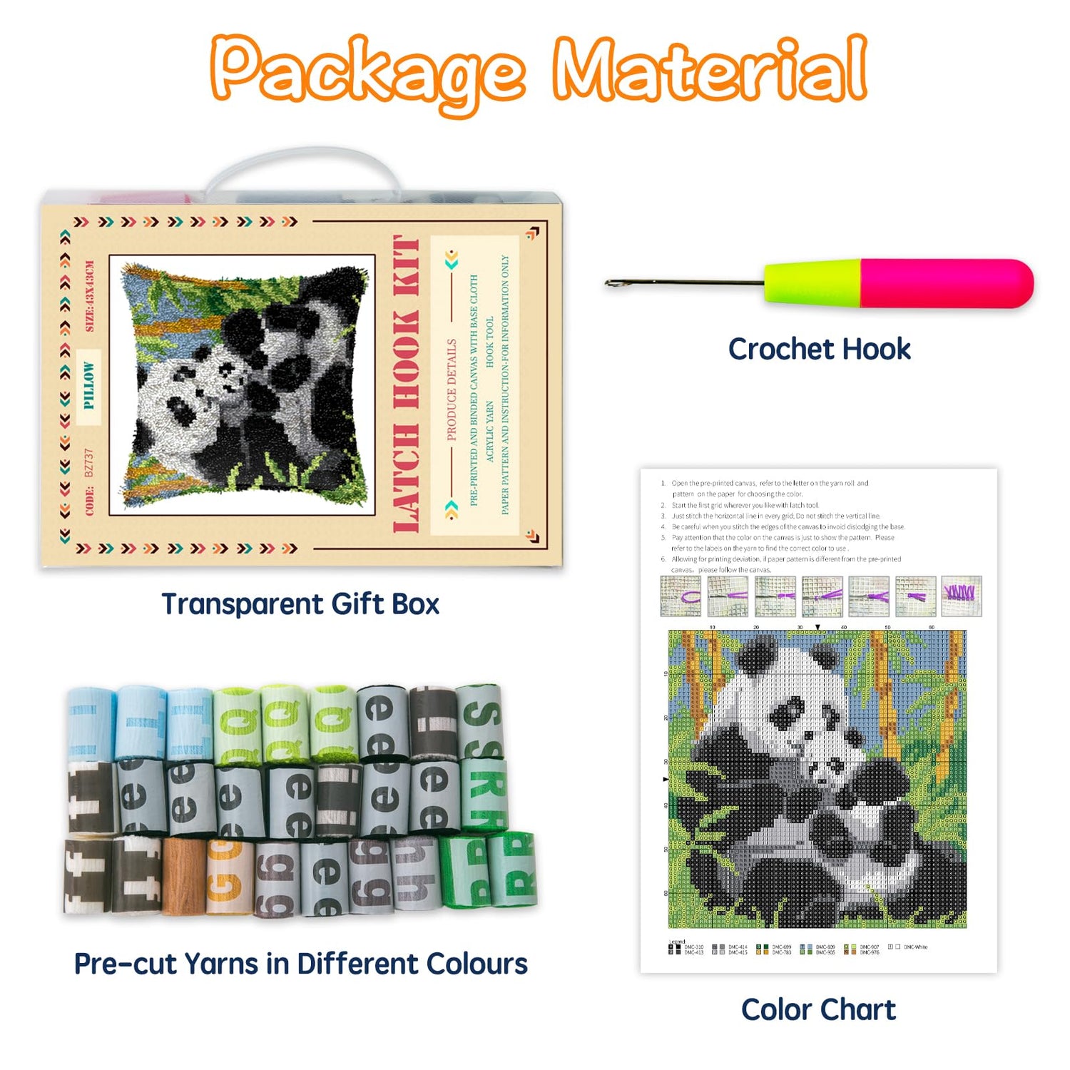 • COMPLETE TOOLS:We've provided you with all of the tools you needs to create plush textured throw pillow with a printed canvas, english instructions, yarn and a crochet hook you can get started right away