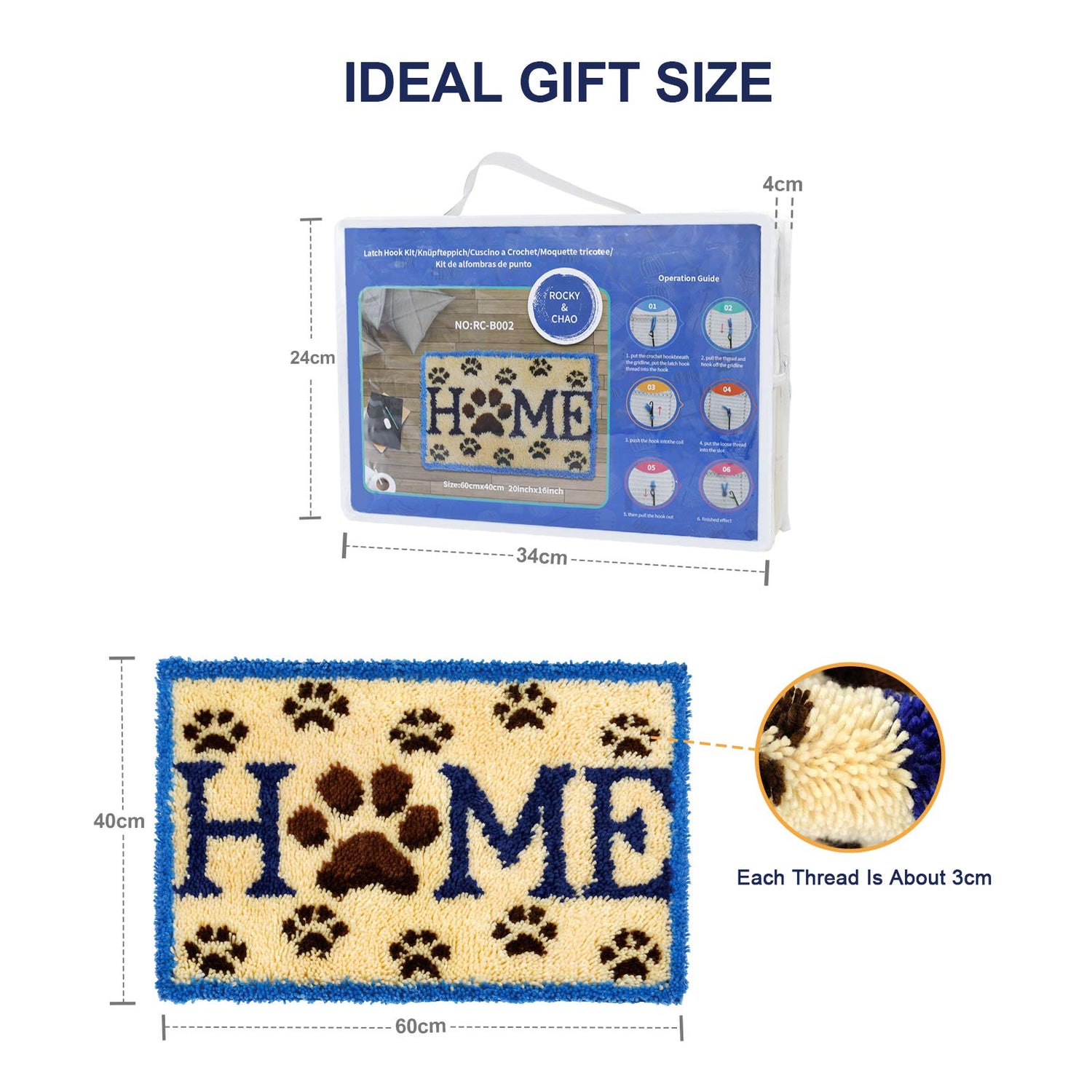 ROCKY&CHAO Latch Hook Kits Home Rug for Home Decoration 60 x 40 cm, DIY Latch Hook Kits, Rug Making Kit for Adults and Kids 23.6"x15.7", Birthday Gifts for Woman(Home)
