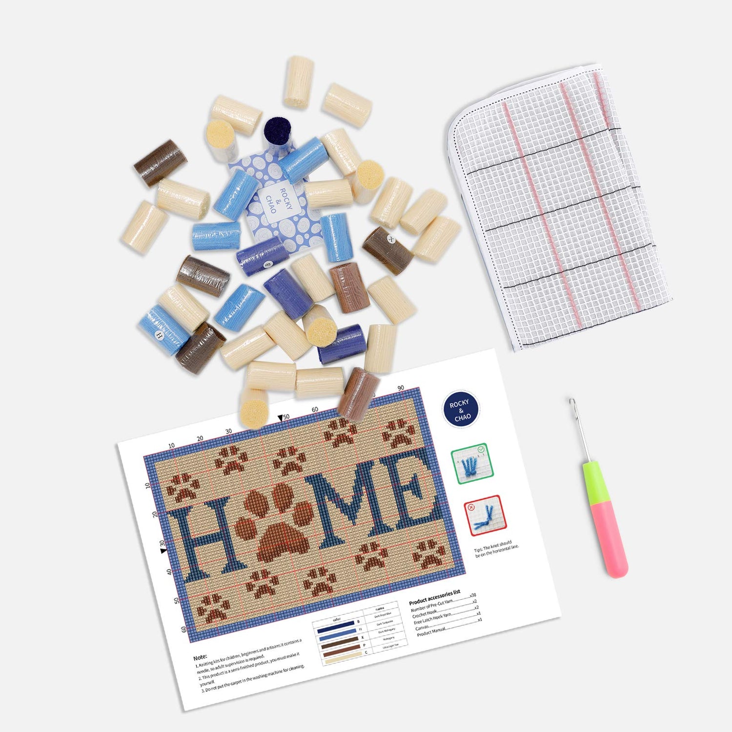- EVERYTHING YOU NEED: Our DIY latch hook kits come with a canvas rug, pre-cut yarn, a latch hook tool, clear instructions and a color-coded guideline!