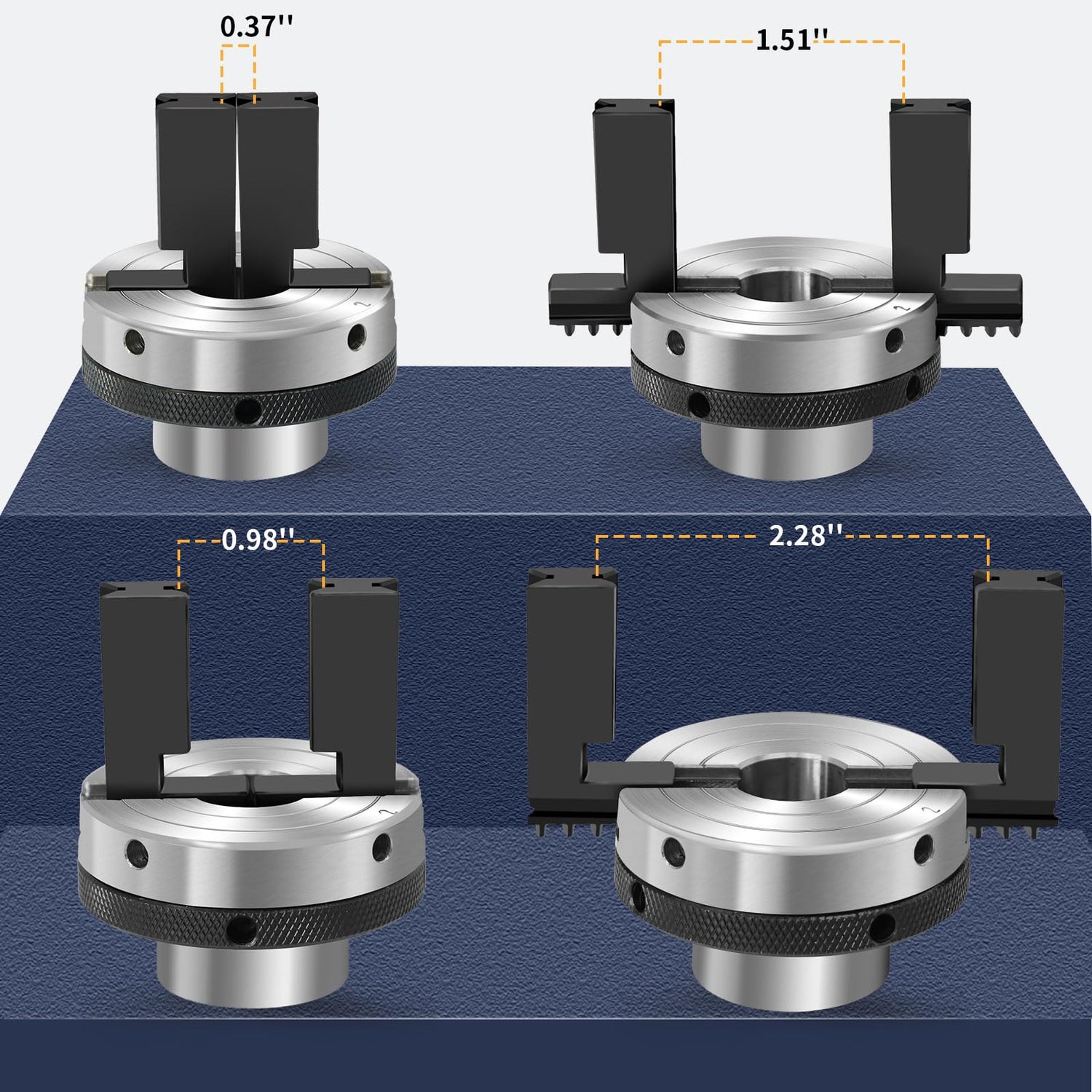 - Scope of Application: The jaws of this self centering 2 jaws chuck can be installed in both positive and negative directions to meet different requirements. Applicable to pen-making square material clamping, auxiliary drilling, end milling. With a 1-Inch x 8TPI thread, which is suitable for most woodworking lathes on the market
