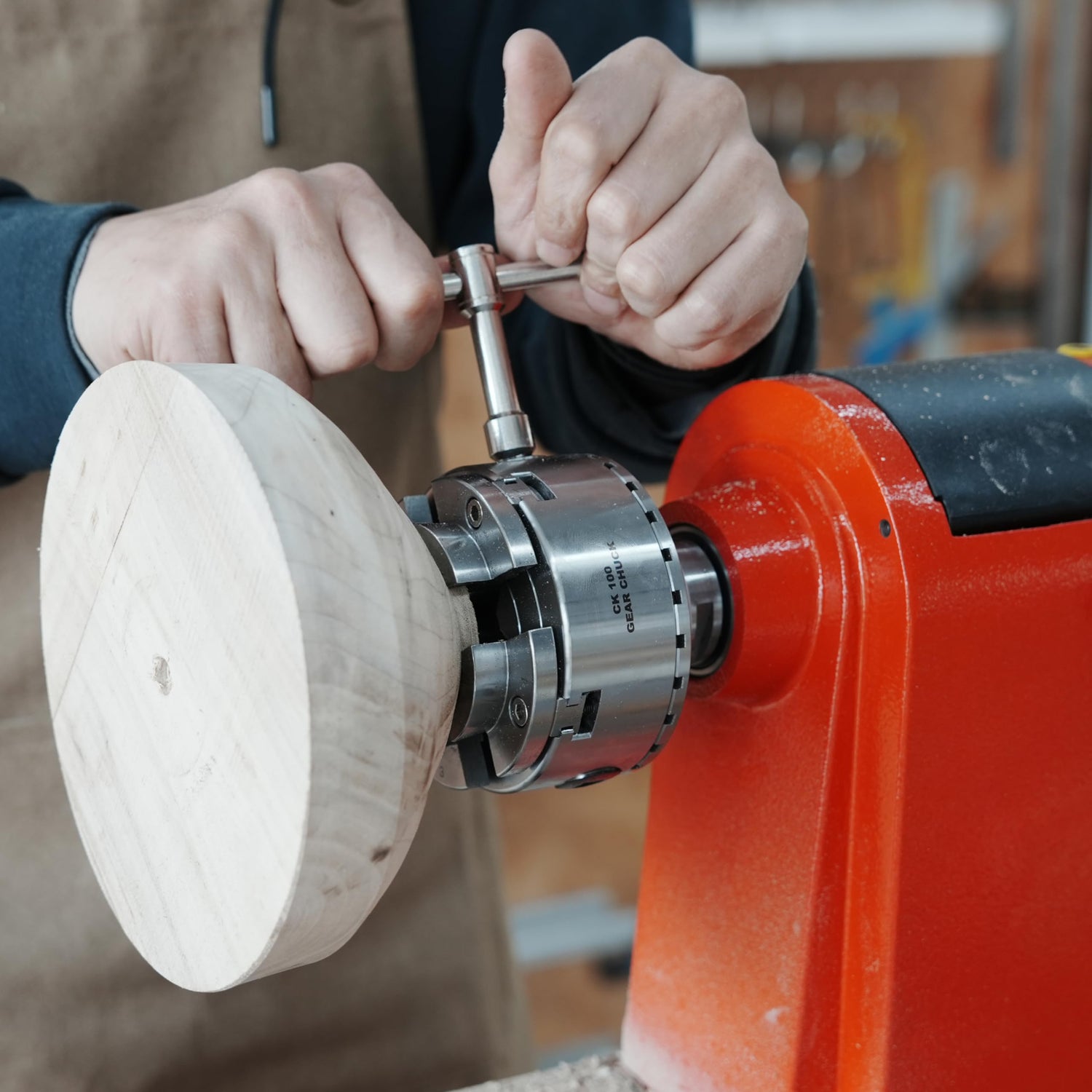 - The wood screw is helpful when turning larger workpieces. Mount the screw in your chuck with an internal grip.