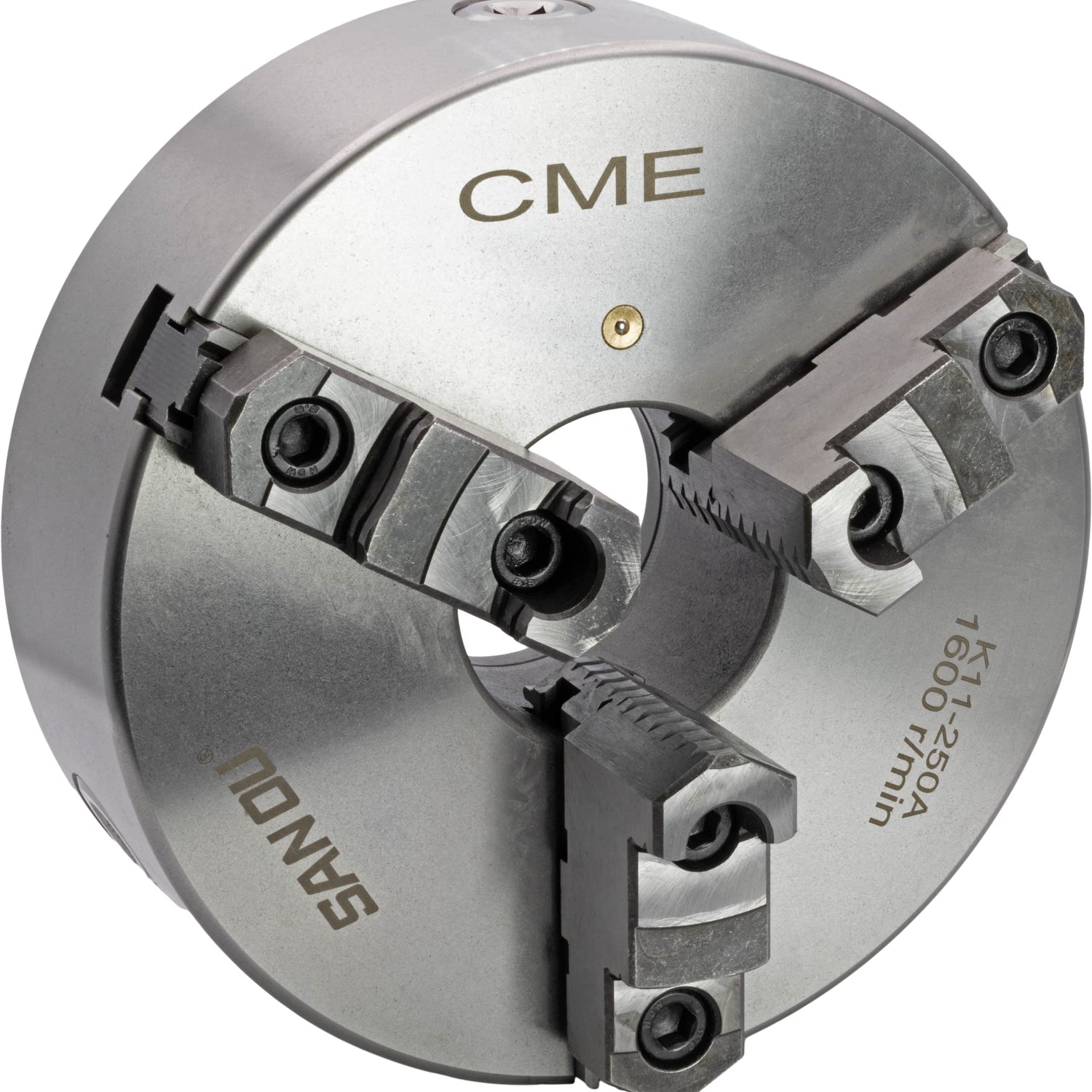 CME 10" 3-Jaw Self-Centering (Scroll) Lathe Chuck, Plain (Flat) Back, Two-Piece Reversible Jaws