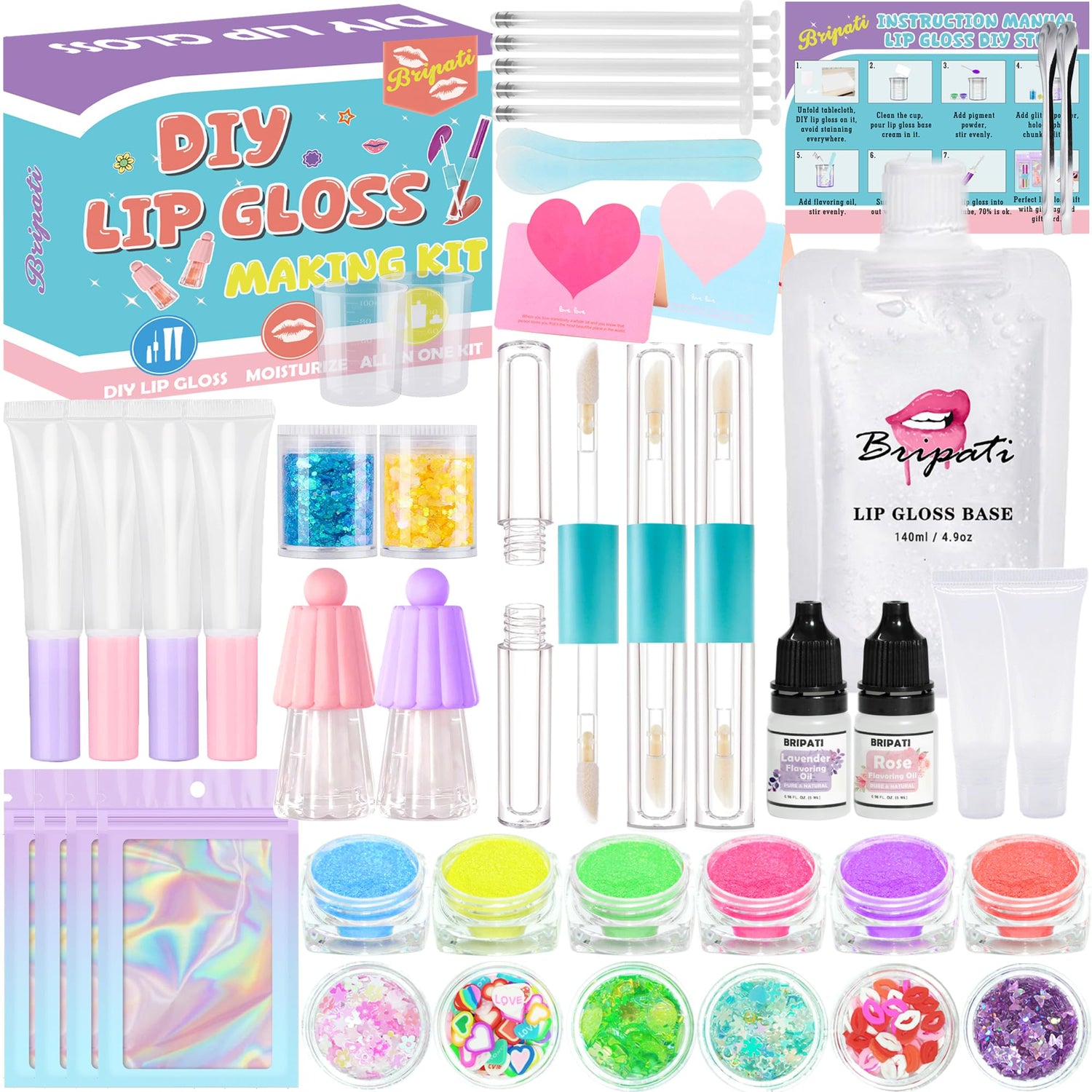 BRIPATI DIY Lip Gloss Making Kit - Make Your Own Lip Glosses Moisturizing DIY Lip Glaze Handmade Glittery Set for Teens Girls Women Makeup Lover Beginner Christmas Birthday Gift