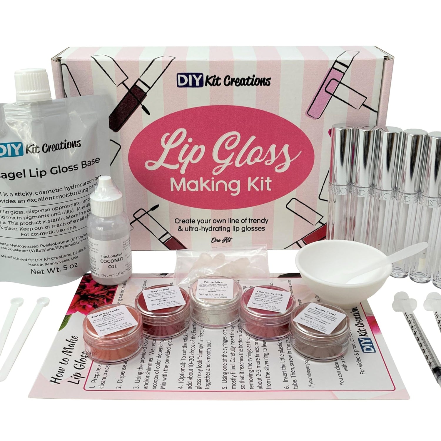 DIY Kit Creations Lip Gloss Making Kit (Standard Kit, 6 Tubes) Made in the USA