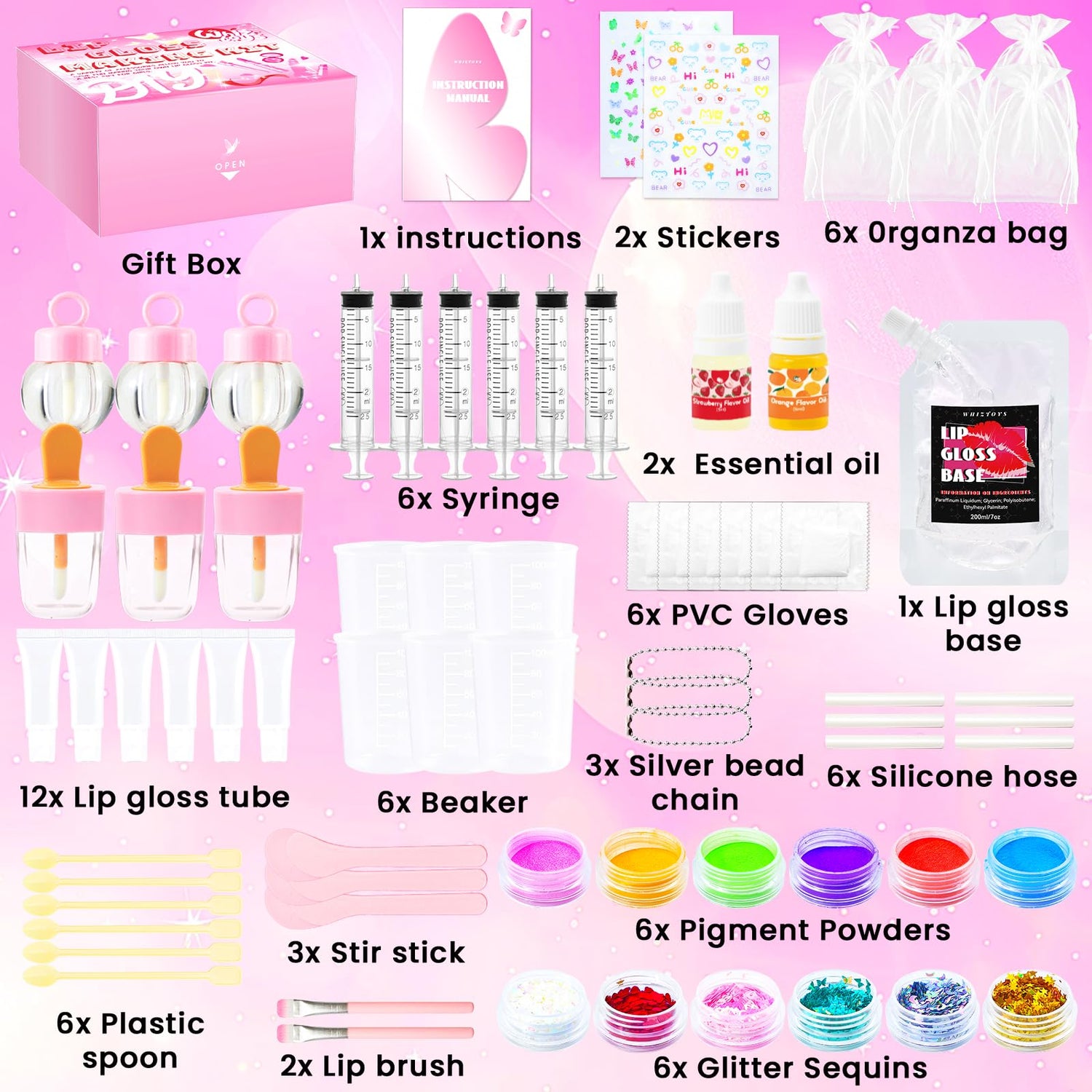 - FUN AND CREATIVE ACTIVITY - This DIY Lip Gloss Making Kit is a creative playground for girls, kids, teens and women. It can inspire unlimited creativity, and it is a perfect project to share fun time with friends and family. Make your own lip gloss kit at home in a fun and relaxing atmosphere
