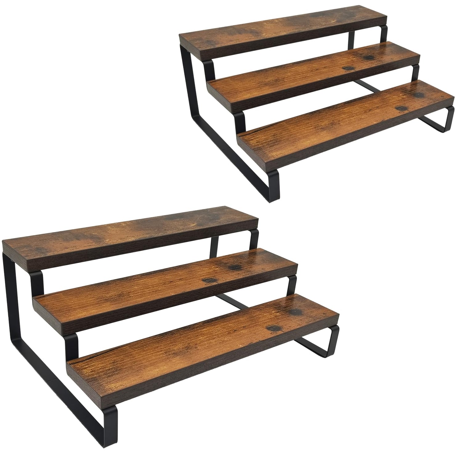 2 Pack 3 Tier Expandable Spice Rack Organizer (13.8” to 26”)Display Riser Stand, Kitchen Cabinet Countertop Pantry Coffee Bar Display Shelf for Spice, Liquor, Perfume, Makeup, Figure, Dolls Collection