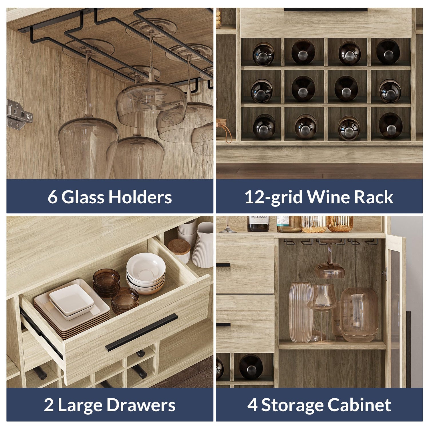 - [Versatile Functionality] - Transform your space effortlessly with this multifunctional wine cabinet, doubling as a wine bar or coffee bar cabinet, perfect for your farmhouse-style dining room or modern kitchen. Enjoy the flexibility of adapting this piece to suit your needs, whether it's storing wine, displaying your favorite mugs, or organizing liquor bottles in your sideboard buffet.