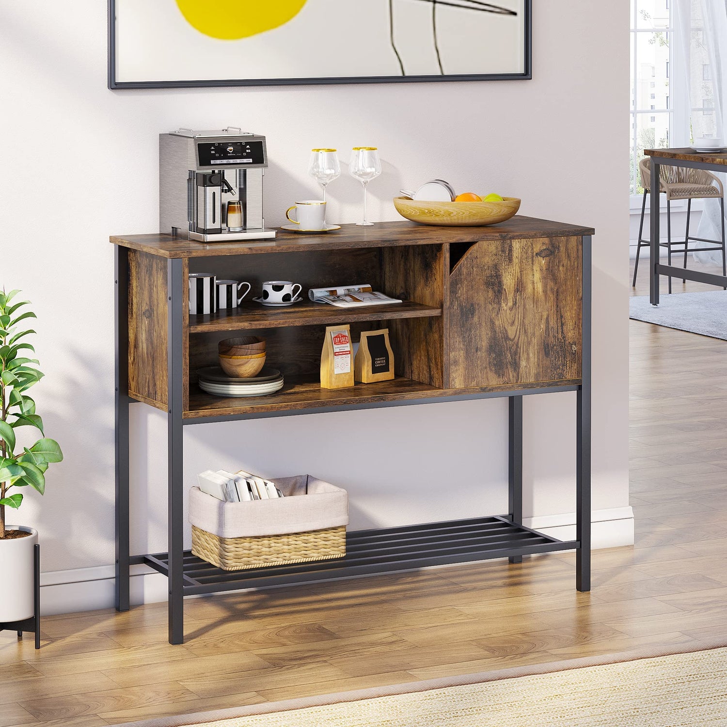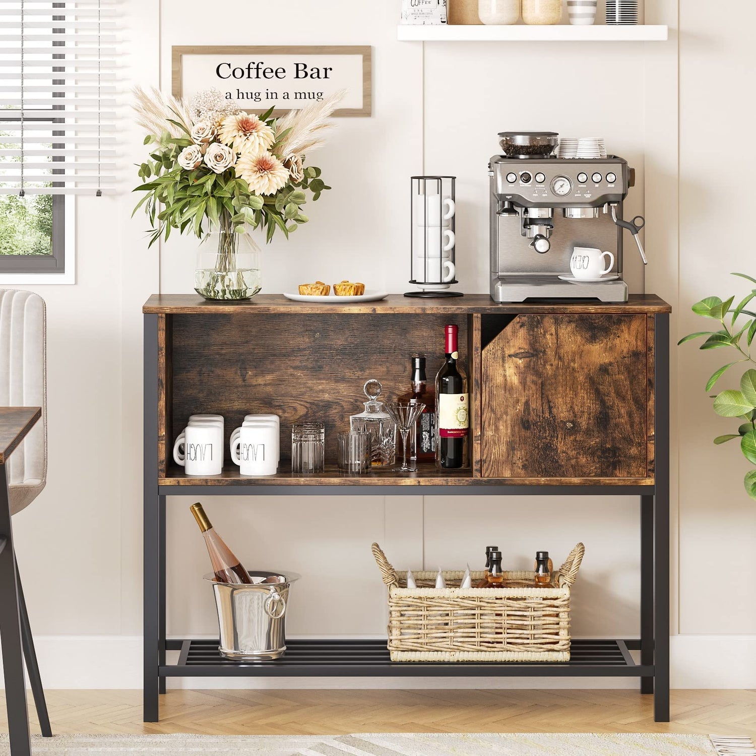 Bestier Coffee Bar with Storage Buffet Cabinet Kitchen Sideboard with Adjustable Shelves Console Table for Kitchen Dinning Room Living Room Hallway Entrance, Rustic Brown