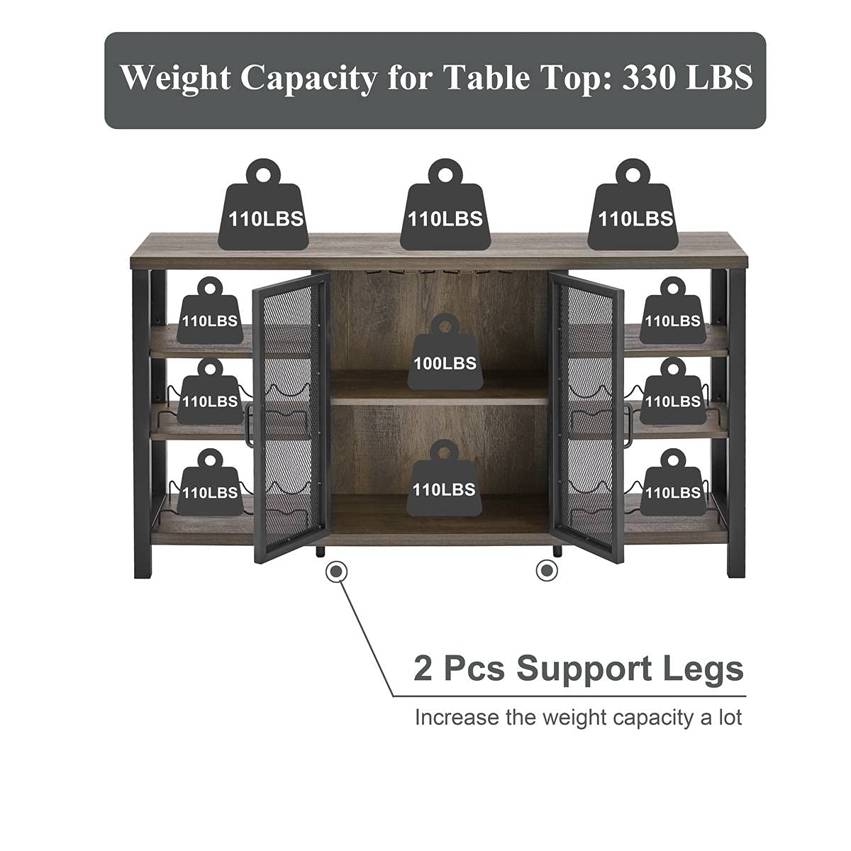 - [100% NOT WOBBLE & High Weight Capacity]: Thanks to the high-grade material and well structured design, this liquor cabinet stands very strong. Adding 2 pcs support leg under bottom shelf enhance the weight capacity and stability a lot. The tabletop can easily hold up to 330 lbs and each shelf hold up to 110 lbs.