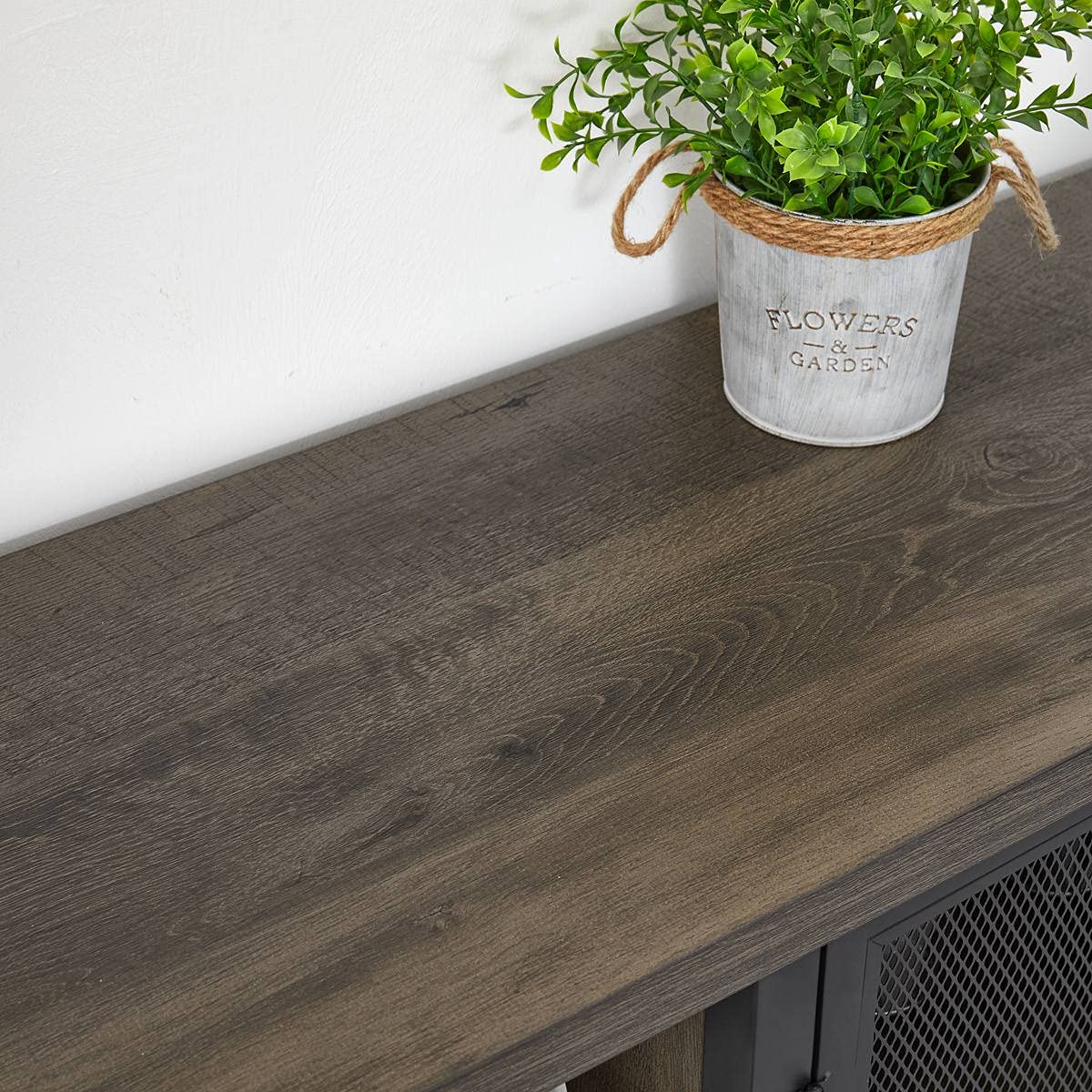 - [Industrial-Chic Design]: Beautiful wood grain and black metal frame flawlessly combined with modern and traditional style. Clean lines fuse with industrial flair to give this liquor cabinet a refreshing appearance that adds an on-trend touch to your room. Not only can be used as wine cabinet, it can also be used as coffee bar, console table or TV stand.