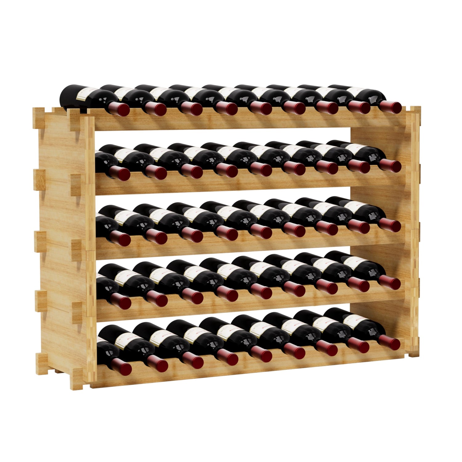 • Stackable Design - Each piece of bamboo and wood has deep notches and grooves, so they can fit together well, making the wine display stand more sturdy and won't shake on the wooden floor or carpet.You can also continue to stack up to the number of layers you like. 5-Tier compact design allows it to maximize storage space and hold enough wine, and horizontally placed design protect wine from oxidation.
