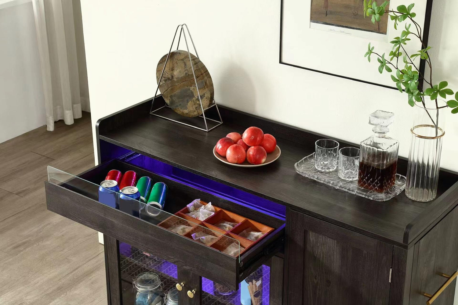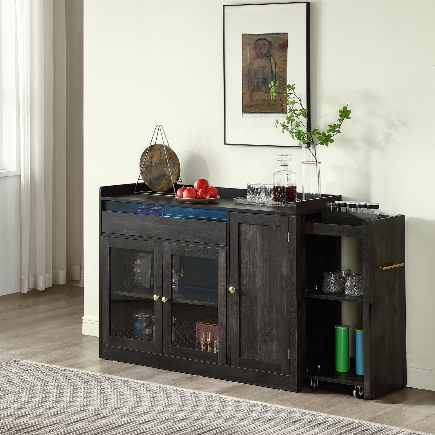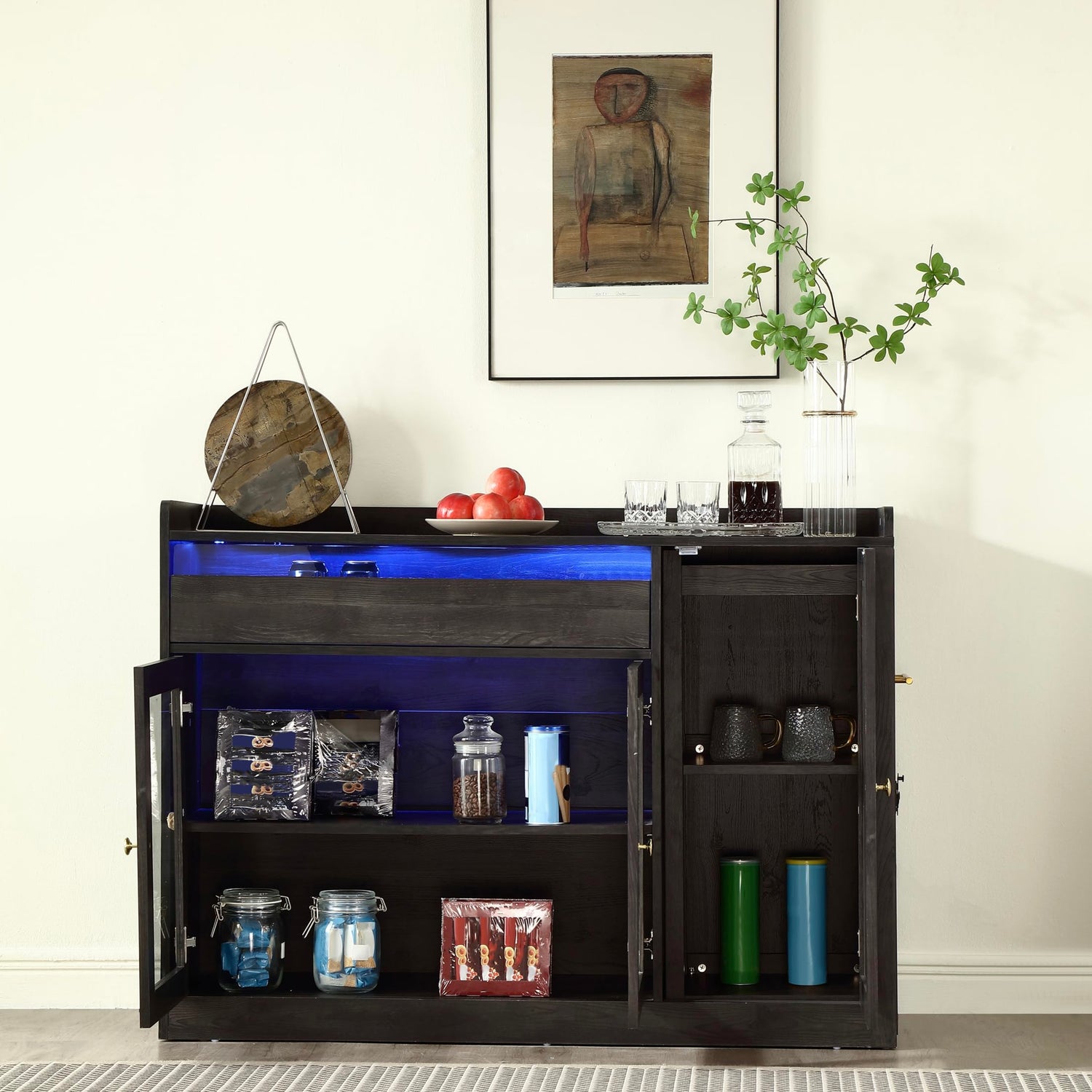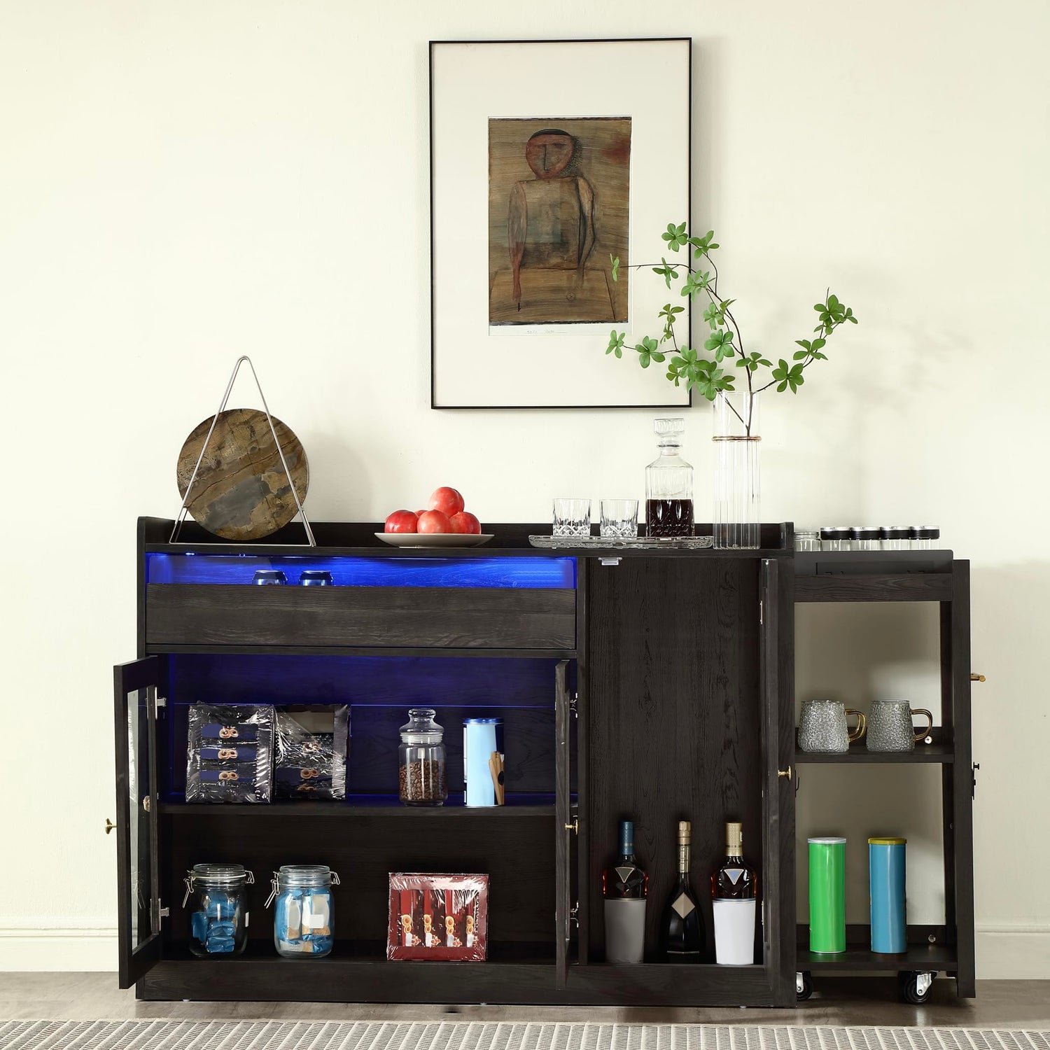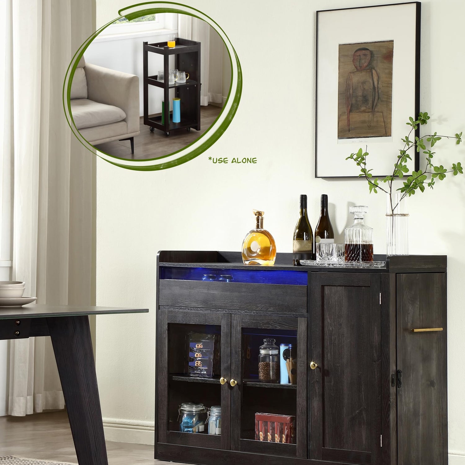 FOREST GRAVITY Smart Buffet Cabinet ,Sidecart brining Things Anywhere You Want,Coffee bar Cabinet, Liquor Cabinet,Sideboard Cabinet,Dancing LED Lighting, with 3 Doors,for Kitchen,Living Room,Black