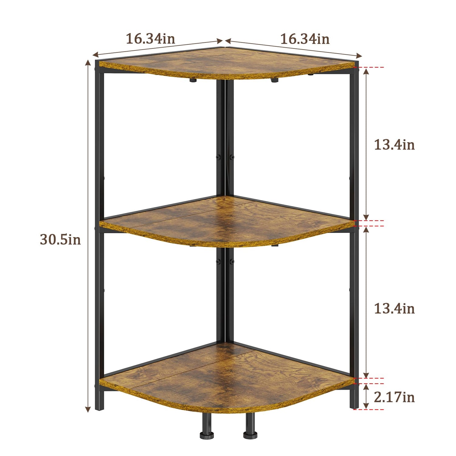keomaisyto Coffee Bar Cabinet, 3-Tier Corner Coffee Stand with Storage Shelf & 16.34" Countertop, Rustic Wood Coffee Bar Station with Adjustable Feet for Kitchen/Entrance/Living Room/Dining Room