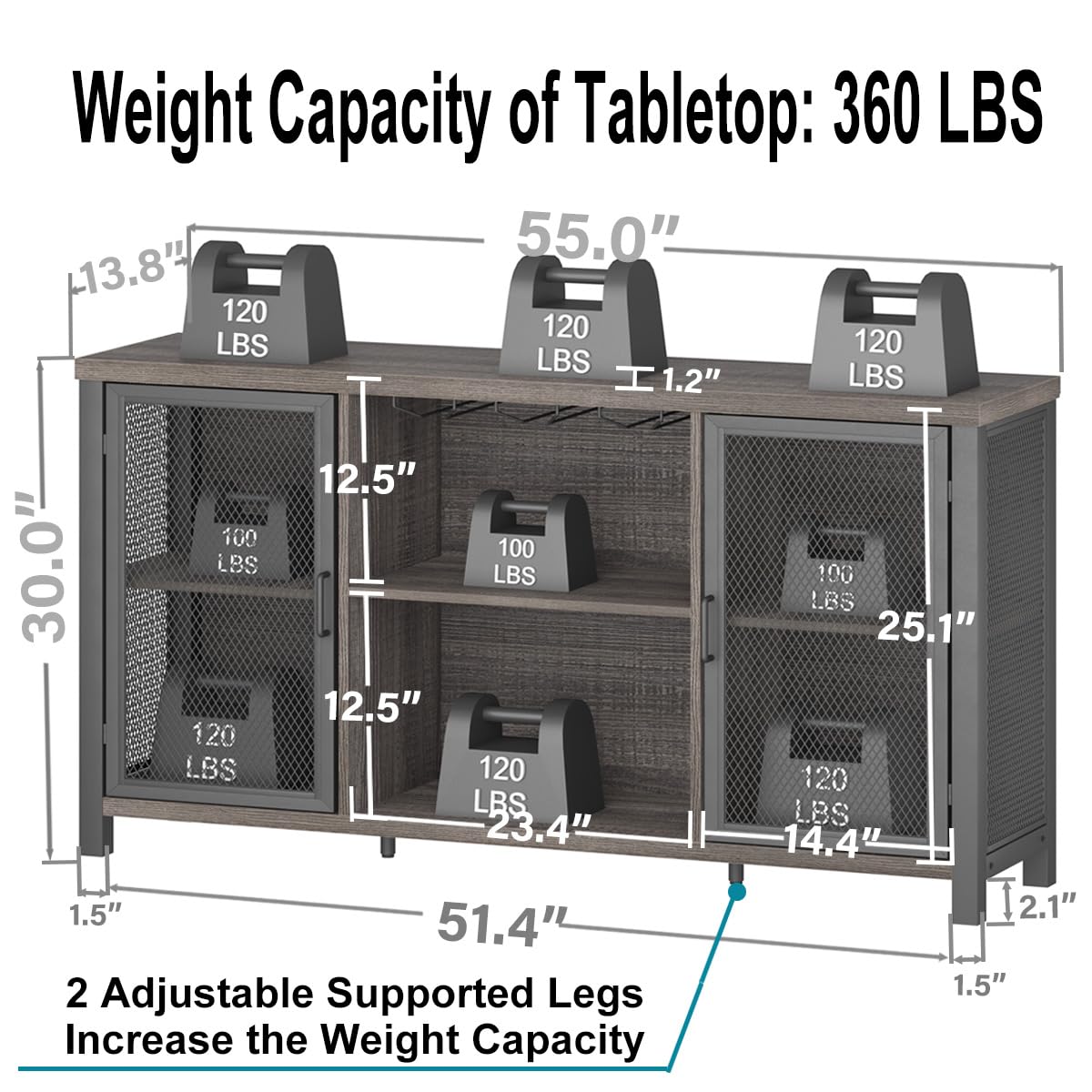 - Sturdy and Durable Construction: Crafted with sturdy metal frame and durable wood panel, the 1.18”thick wine rack cabinet table top ensures stable and durable, offering an excellent weight capacity of over 360lbs. Adjustable feet on the bottom to prevent wobbling even on uneven floors. Equipped with anti-tip straps to enhance the stability and add an artistic touch.