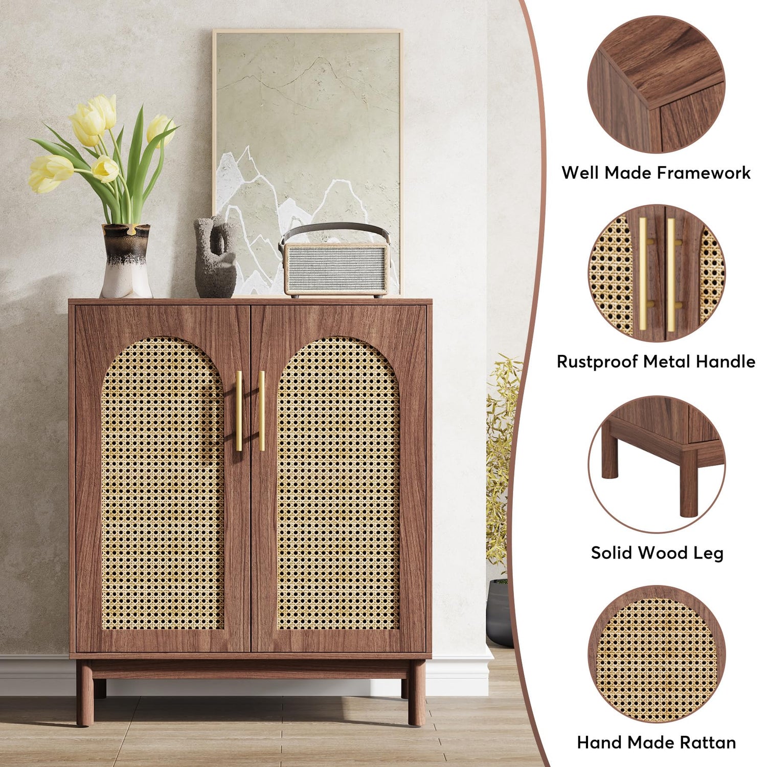 • Handmade Rattan Doors: MDF construction with solid wood legs, the accent cabinet features a handmade natural rattan weave which enhances the cabinet's texture and adds elegance. The high-quality natural materials give it a luxurious touch.