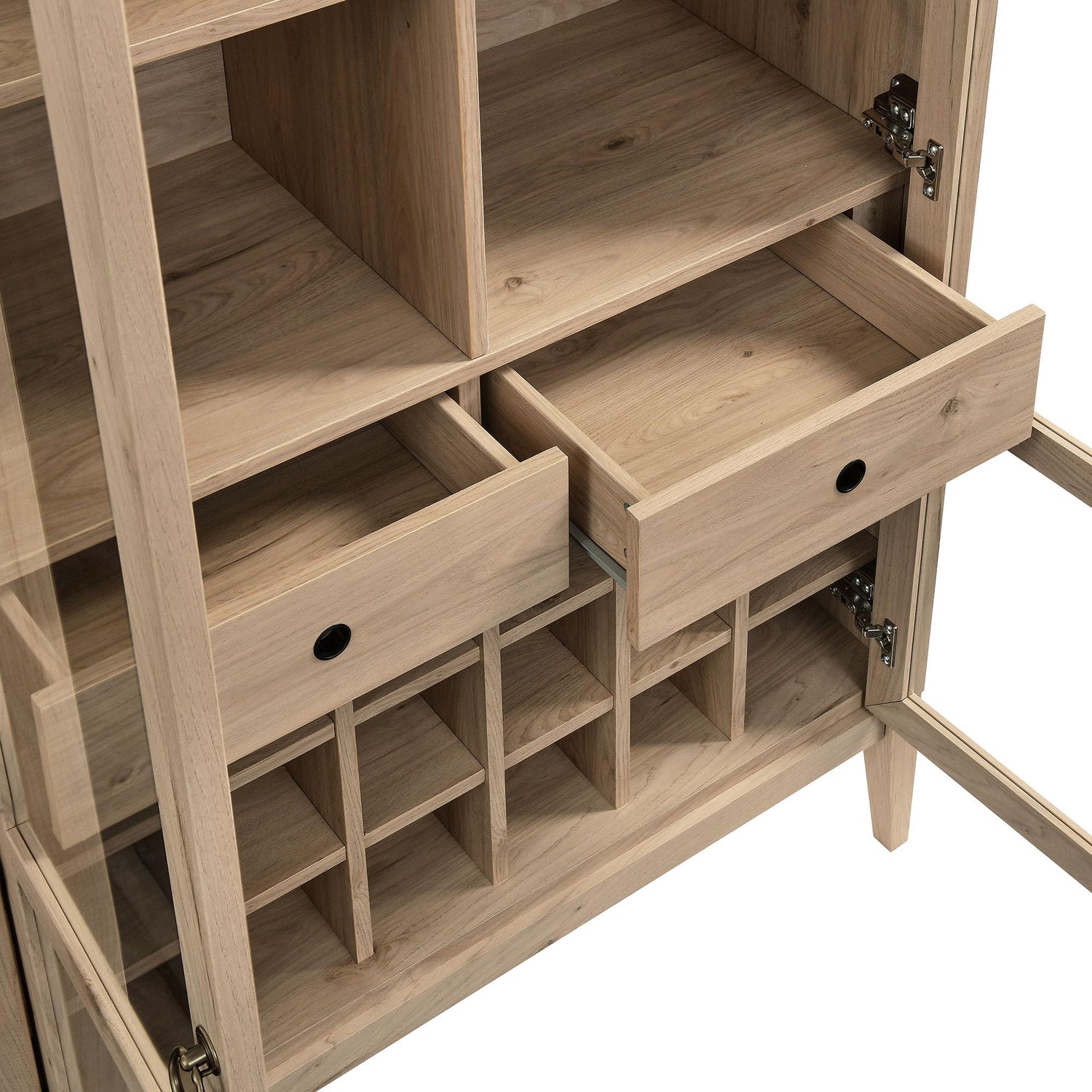 - DEDICATED WINE STORAGE – The Nolan Wine Bar Cabinet includes a 20-bottle wine rack, a stemware rack for hanging glasses, and two full-glide cutlery drawers, making it ideal for keeping your bar essentials organized