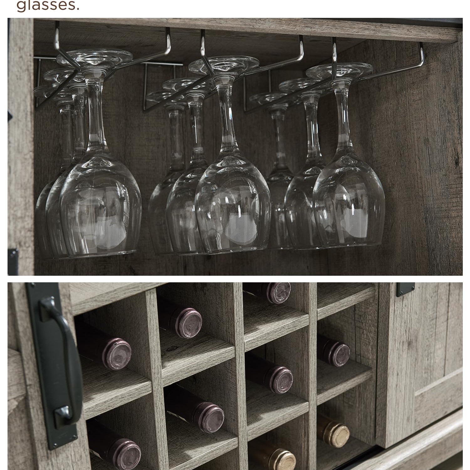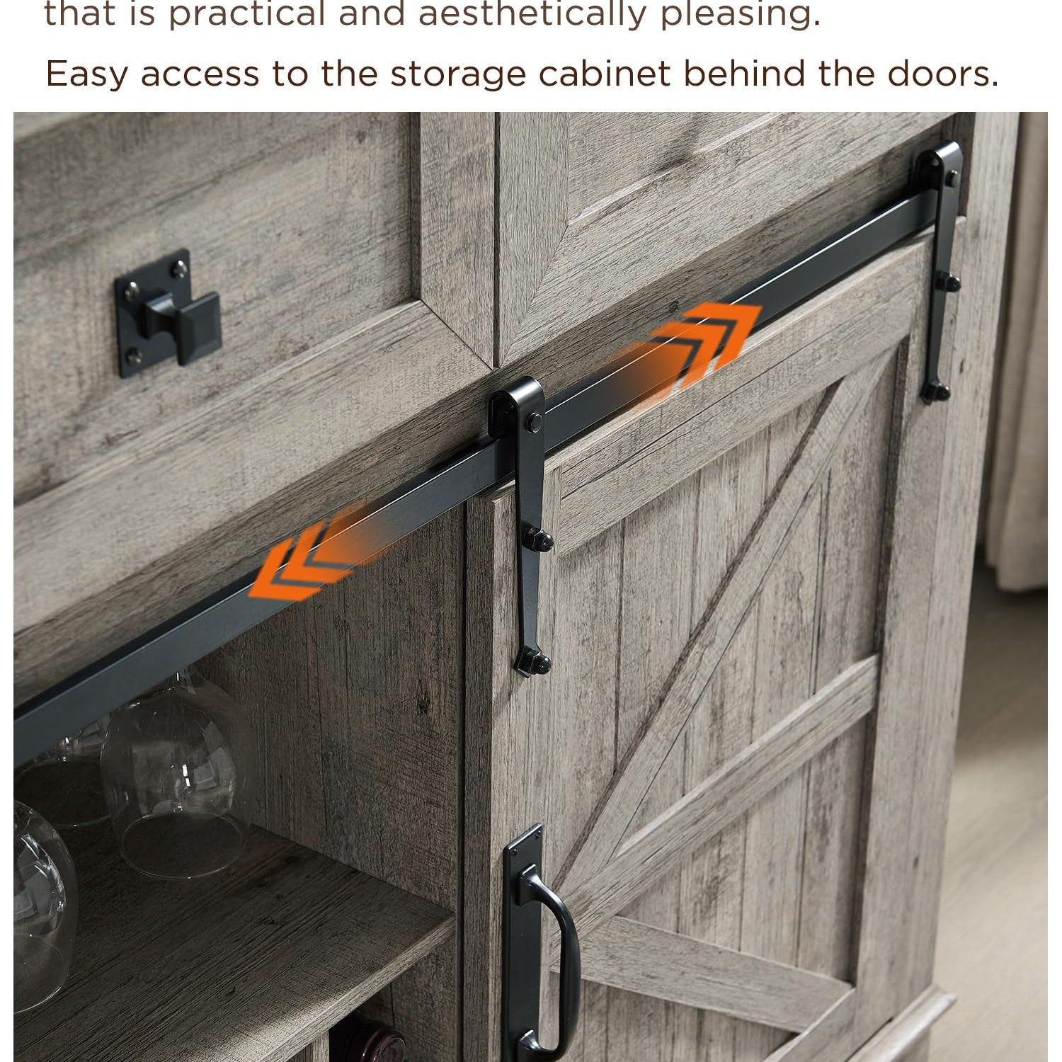 - SLIDING BARN DOORS: Easy access to the home bar cabinet via sliding metal track, designed for smooth and quiet slide. Allows you to hide or reveal this home bar furniture freely. Flexibly divide it into different storage and display area.