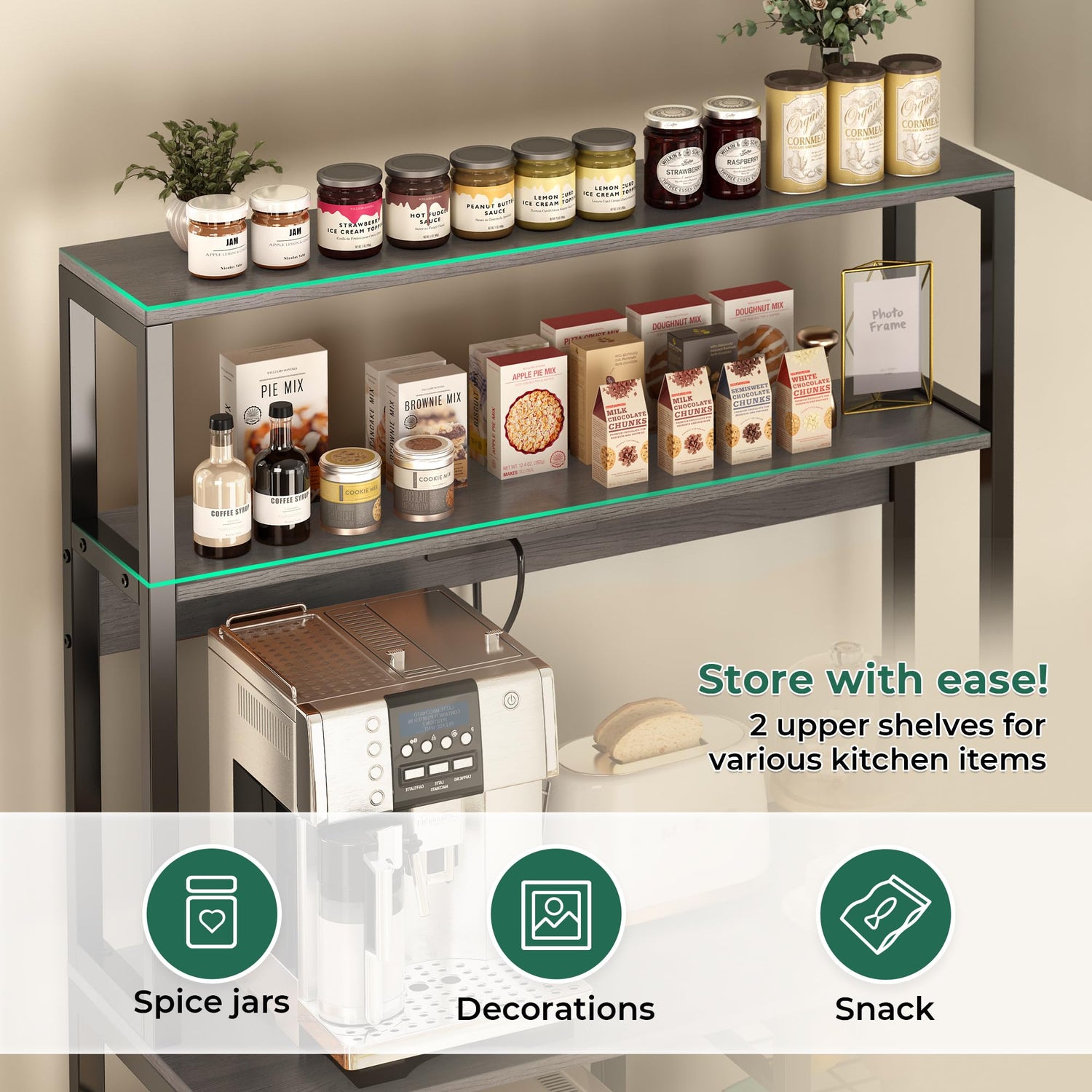 - 【Endless Use Occasions】Use it as a microwave stand with storage or as a kitchen storage shelf to keep your appliances in perfect order. But wait, there's more! Turn it into a stylish display shelf or coffee bar station in your living room, or place it on the balcony as a plant table to showcase your lovely plants. You can explore even more uses of this kitchen shelf
