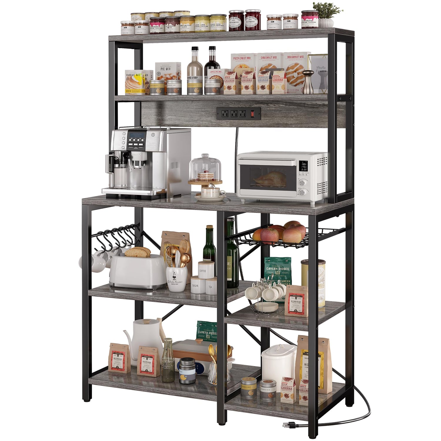 - 【Solid & Stable Construction】Crafted with durable particle board and a robust metal frame, your kitchen appliances and dinnerware will find a reliable home on this sturdy kitchen organizer shelf. Moreover, the balanced adjustable feet and anti-tip device keep this baker's rack even stabler on the floor