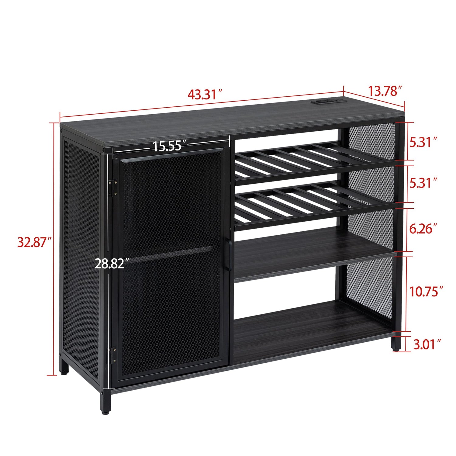 - Power-packed Charging Station: Our wine bar cabinet is equipped with 2 AC outlets and 2 USB ports to effortlessly charge your coffee maker, ice maker, or other electrical appliances, thereby boosting convenience with a 5.9' electrical cord.