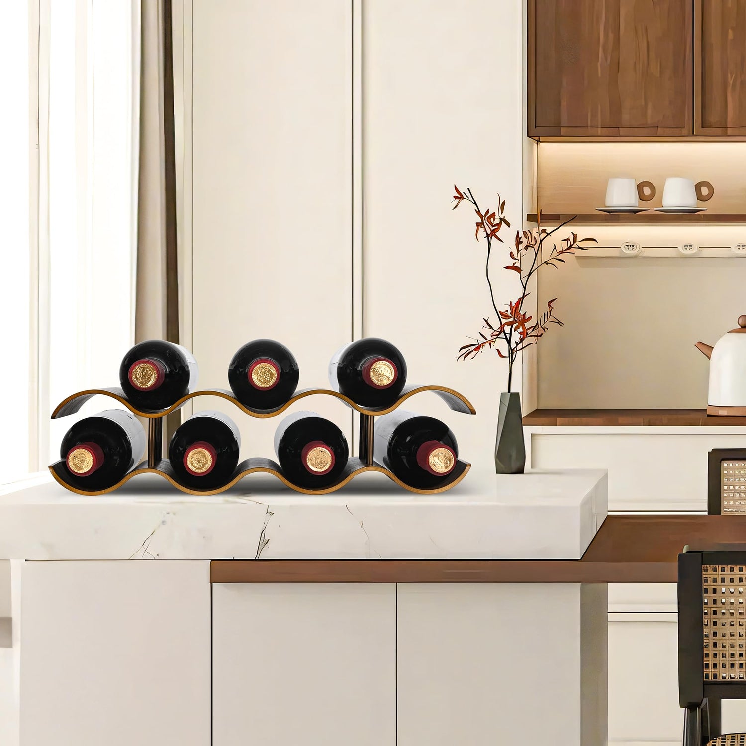 - Compact Design - This wine rack holds 7 wine bottles in a freestanding, 2 tier design. The compact size allows for easy placement in cabinet or on any countertop or table. Perfect for storing and organizing your favorite wine bottles in one convenient location. Keeps your wine bottles within reach for easy access when entertaining or for daily use.