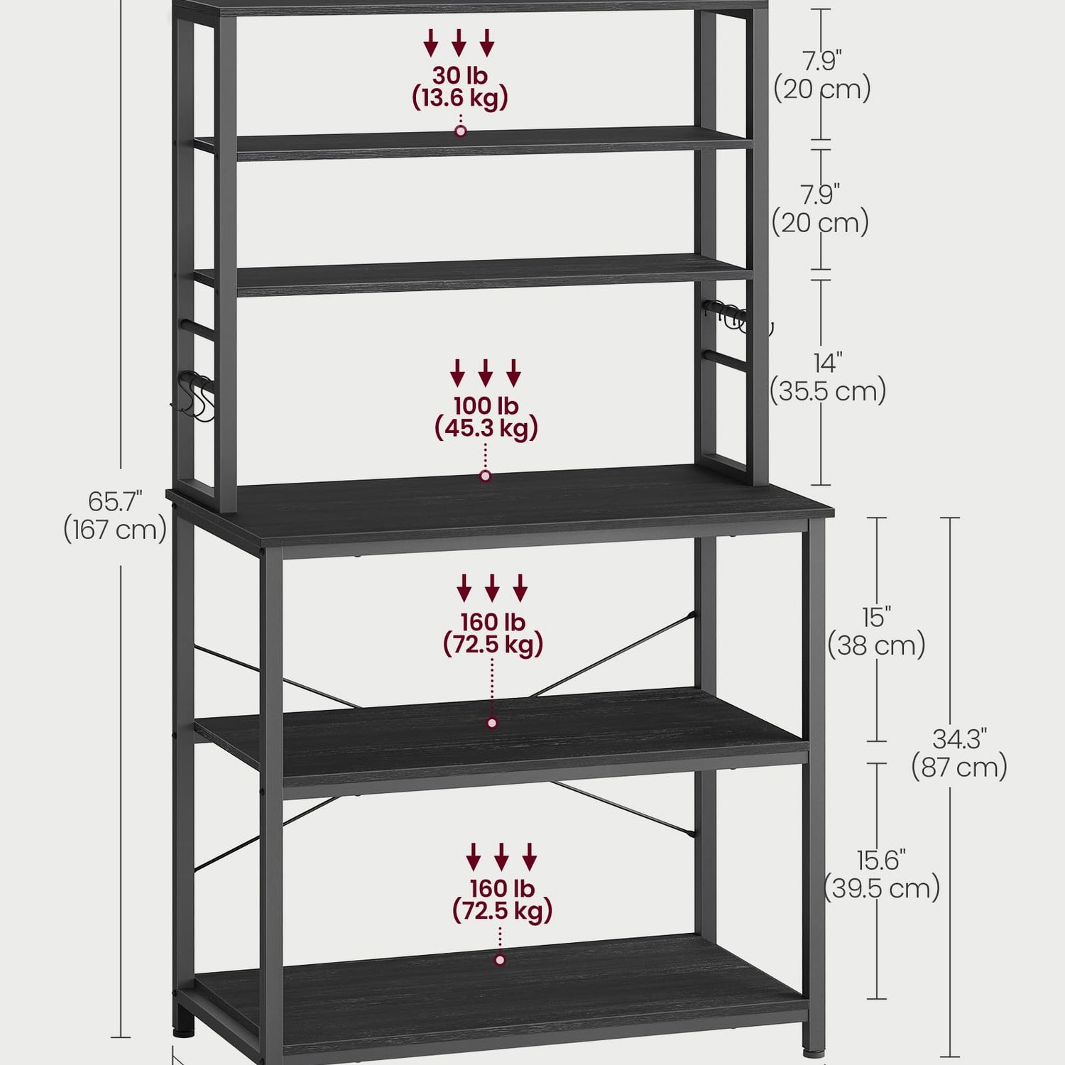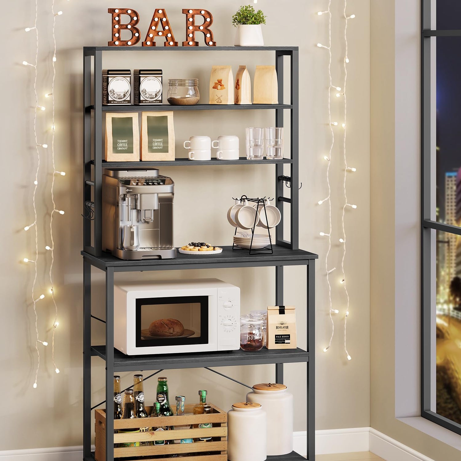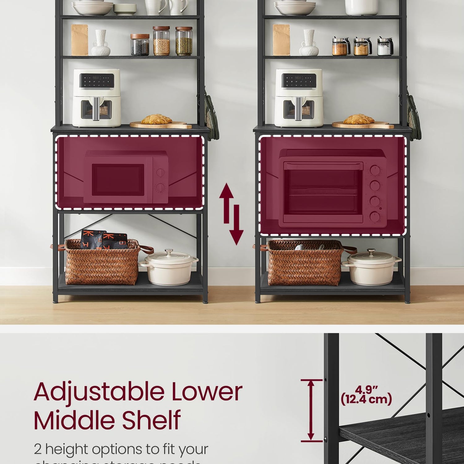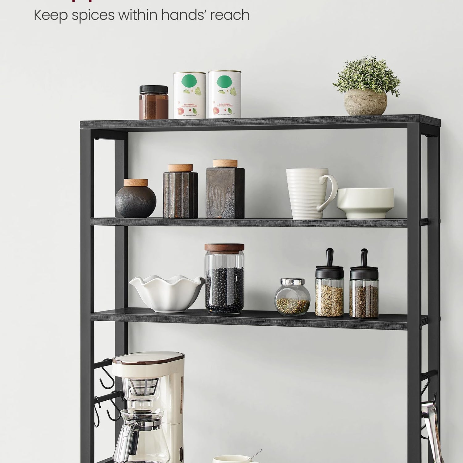 VASAGLE Coffee Bar, 31.5 Inches Baker's Rack for Kitchen with Storage, 6-Tier Kitchen Shelves with 6 Hooks, Microwave Stand, Industrial, Charcoal Gray and Black UKKS019B22
